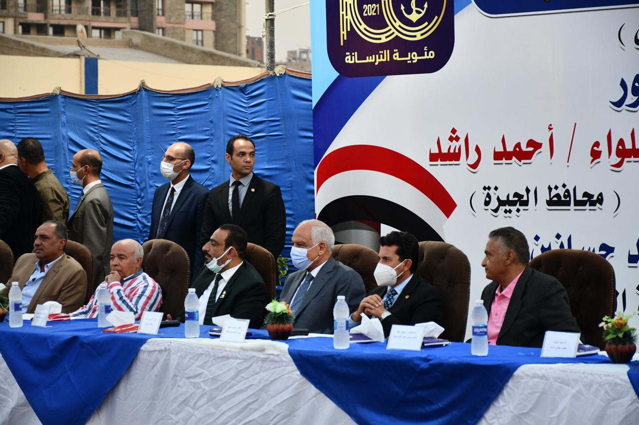 من جانبه، أعرب محافظ الجيزة عن سعادته بتواجده اليوم في افتتاح تطوير حمام السباحة الذي شهد علي مراحل إنشاءاته المختلفة، مشيرًا إلى تقديم كل الدعم والمساندة لنادي الترسانة الرياضي بالتنسيق مع وزارة الشباب والرياضة باعتبار نادي الترسانة قلعة من قلاع الرياضة بمحافظة الجيزة.