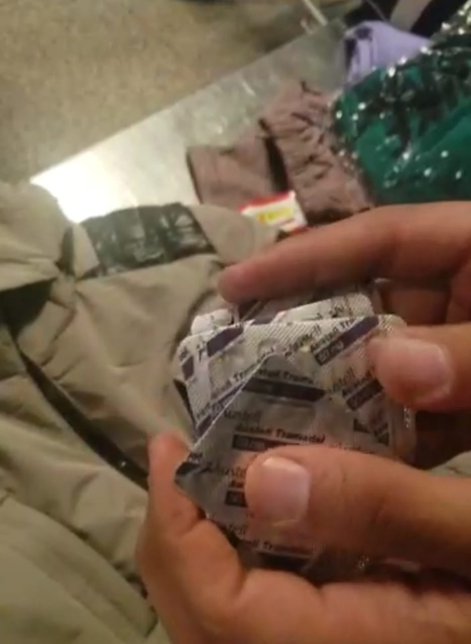 وبالعرض على حمدي حافظ نائب مدير الإدارة، قرر تمرير حقائب الراكب على جهاز الفحص بأشعة «X-RAY» بمعرفة محمود سعد مأمور الفحص، فتلاحظ وجود كثافات متماثلة وتم تأكيد الاشتباه، وبالعرض على حسين هيكل حسين نائب مدير الإدارة، قرر تكليف أمير محمود مأمور الجمرك، تحت إشراف أحمد فؤاد حامد مدير إدارة الحركة، بتفتيش حقائب الراكب وتفتيشه ذاتيًّا، فتبين وجود 57 شريطًا لأقراص الترامادول المخدرة 150 مليجرام، و4 شرائط لأقراص ترامادول المخدرة 200 مليجرام بكل شريط 10 أقراص بإجمالي 610 أقراص ترامادول المخدرة، و21 ألف دولار أمريكي و350 عبوة سجائر إلكترونية، وقطع غيارها ومستلزماتها مخبأة داخل علب الشيكولاتة وداخل سجادة والجوارب وجيوب الملابس بحقائبه.