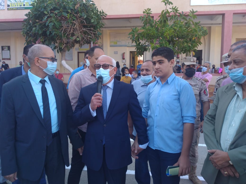 وطالب المحافظ إدارة المدرسة بتوفير مايك، وقام بتعنيف الطالب «لؤي» في الصف الأول الثانوي، وذلك بعدما أظهر عدم اهتمامه بتحية العلم، وقيامه باللعب والضحك أثناء تحية علم مصر.