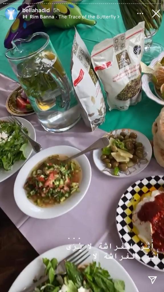 و بدأت بيلا احتفالات عيد ميلادها في الساعات الأولي من الصباح بأجواء عائلية بالطابع الفلسطيني الأصيل.. إذ شاركت بيلا صورًا عبر حيابها الشخصي علي موقع تبادل الصور والفيديوهات “إنستجرام” لسفرة الفطور الفلسطينية وأرفقت الصور بأغنية "أثر الفراشة".