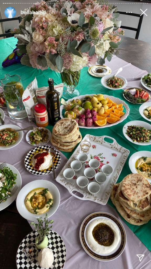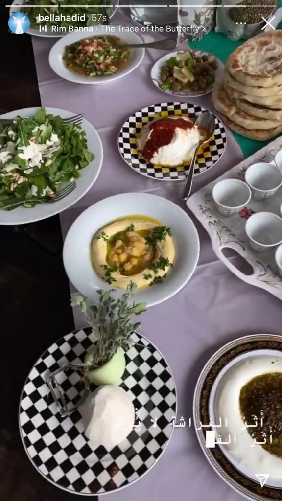إذ جهز محمد حديد،والد بيلا، الفلافل بنفسه في المنزل، وقدمها إلى جانب الحمص والزيتون الأخضر واللبن والزيت والزعتر، ومن الواضح أن العائلة تحرص على استخدام منتجات فلسطينية، فقد أظهرت الصور أن الزيت والزعتر من ماركة "الأرض" الفلسطينية.