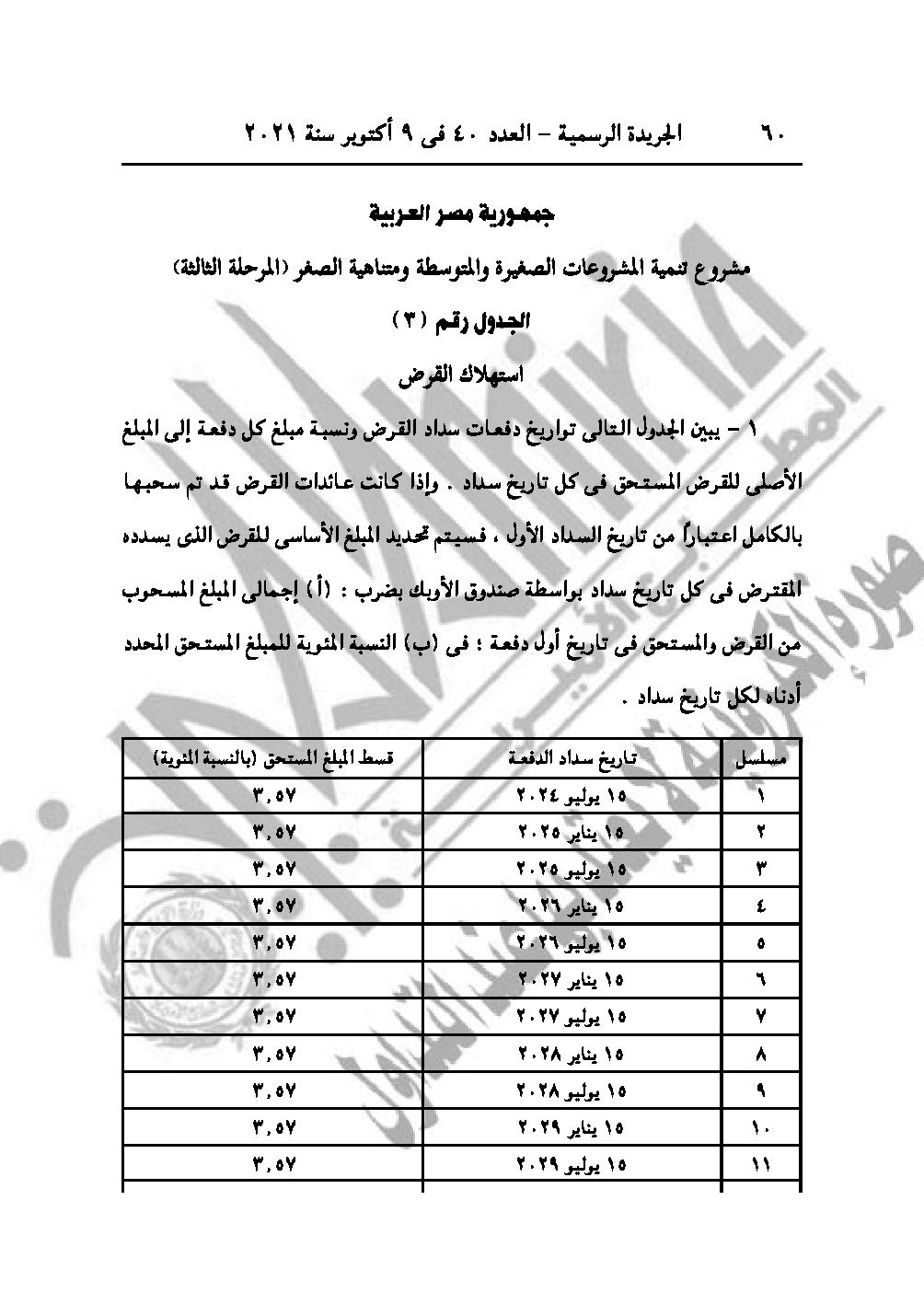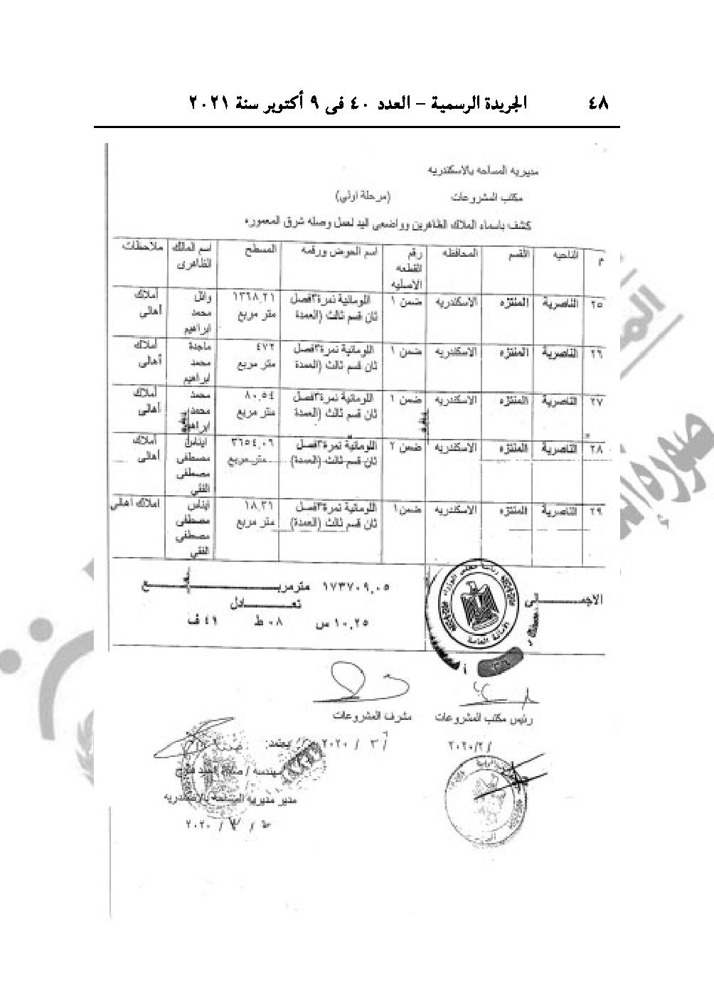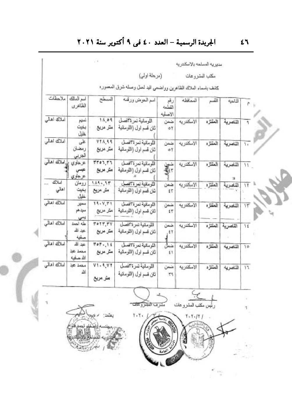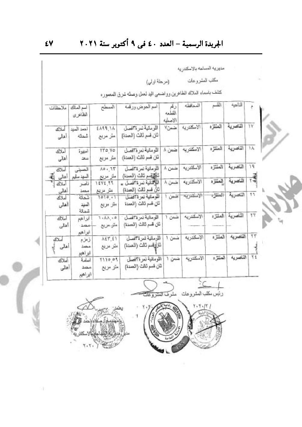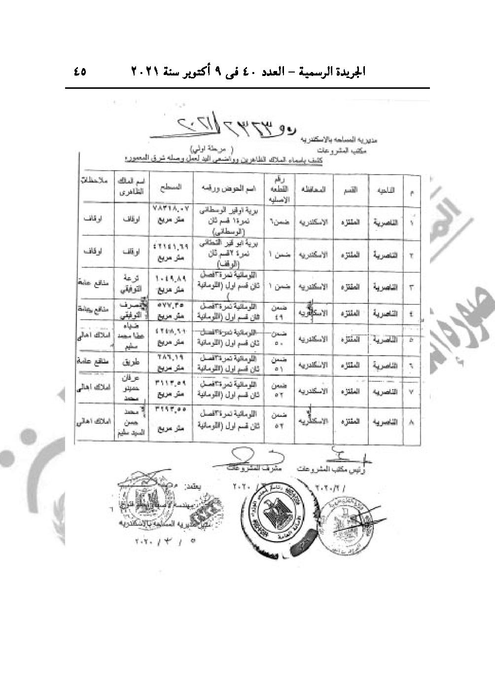 نشرت الجريدة الرسمية في عددها رقم 40، الصادر في 9 أكتوبر 2021، 3 قرارات لرئيس مجلس الوزراء الدكتور مصطفى مدبولي، باعتبار مشروع إقامة محطة معالجة مياه الصرف الصحى بالمنوفية، وتنفيذ وصلة شرق المعمورة من أعمال المنفعة العامة، بالإضافة لمنح الجنسية المصرية لثلاث سوريين وليبي.
