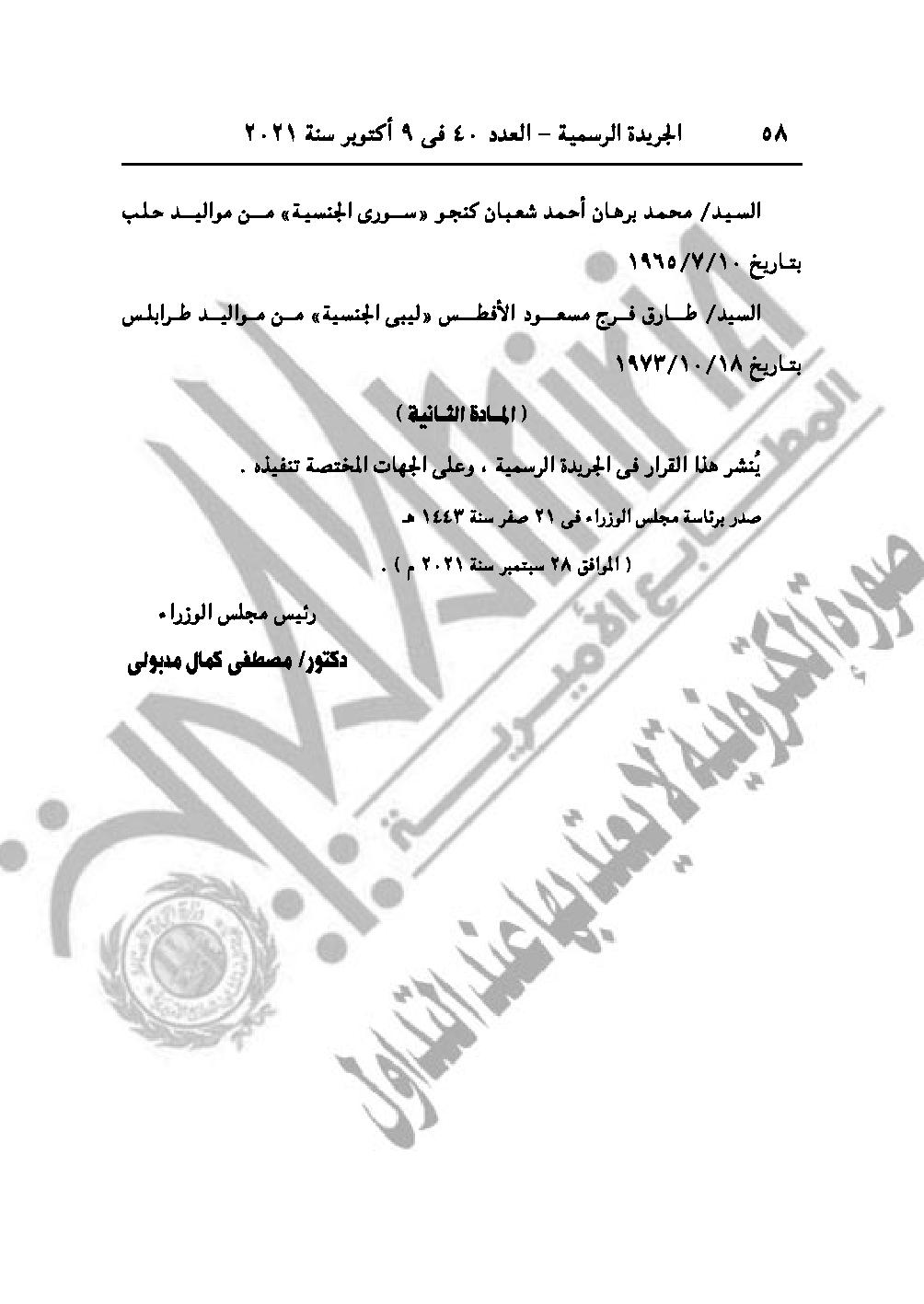 آخر قرارات رئيس الوزراء اليوم.. منح الجنسية المصرية لسوريين وليبي