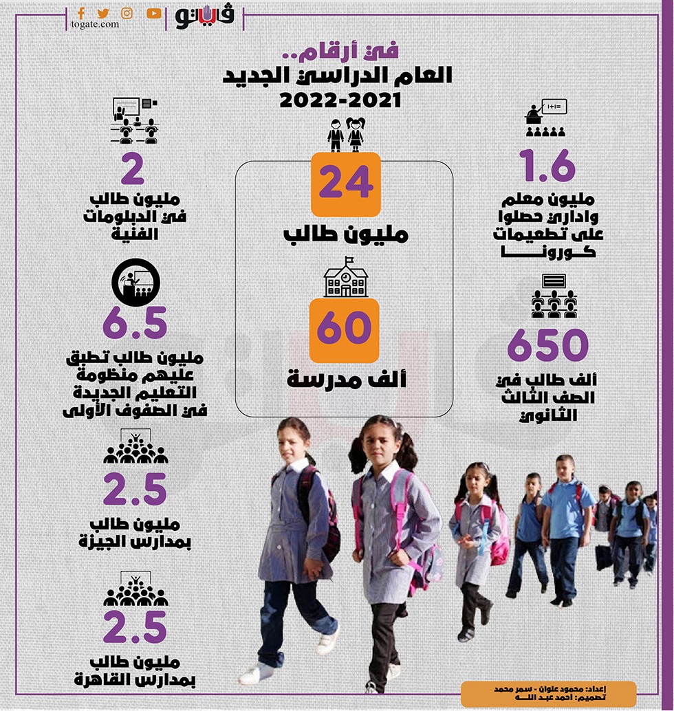 في أرقام..العام الدراسي الجديد 2020/2021 الأحد 10/أكتوبر/2021 - 02:14 م 10/10/2021 2:14:35 PM محمود علوان - سمر محمد شارك طباعة 18 حجم الخط شارك طباعة استقبال الطلاب اول ايام العام الدراسي الجديد افتتاح مدارس