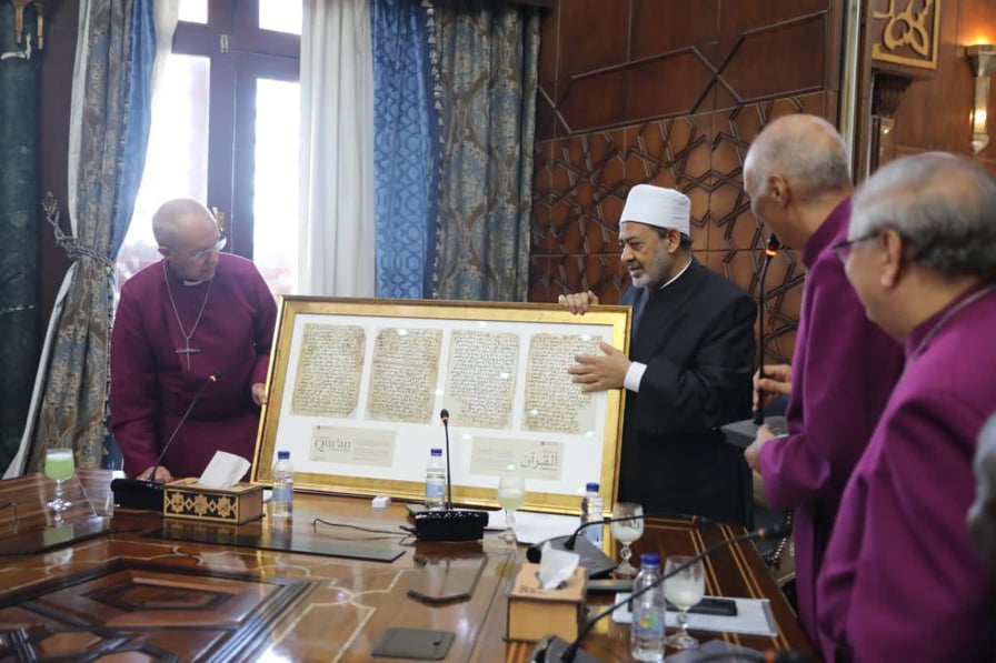 وفي ختام اللقاء، أهدى الإمام الأكبر إلى جاستن ويلبي، رئيس أساقفة كانتربري بإنجلترا ذاكرة الأزهر ونسخة فاخرة من القرآن الكريم، كما أهدى السيد جاستن ويلبي إلى فضيلة الإمام الأكبر مخطوطة قديمة "طبق الأصل" من القرآن الكريم تعود إلى القرن السادس، وهي النسخة الوحيدة من نوعها في العالم وتوجد في جامعة برمنجهام بإنجلترا.