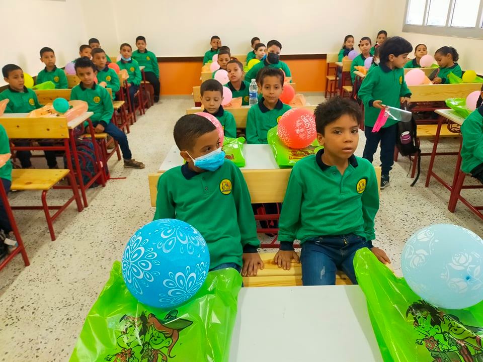 خصصت إحدى المدارس بالونة مدون عليها اسم كل طالب من طلابها بالإضافة إلى زجاجات مياه معدنية وذلك لتشجيع التلاميذ على حب المدرسة.