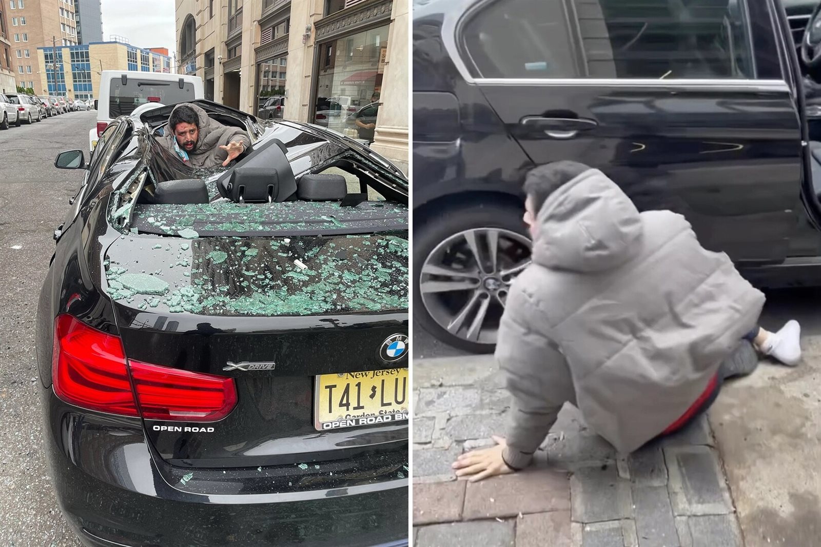 وهبط الرجل البالغ من العمر 31 عامًا، والذي لم يتم الكشف عن اسمه، على سقف سيارة "BMW" سوداء، حيث شُوهد وجهه مضرجًا بالدماء، أثناء قيامه من تحت "الأنقاض".