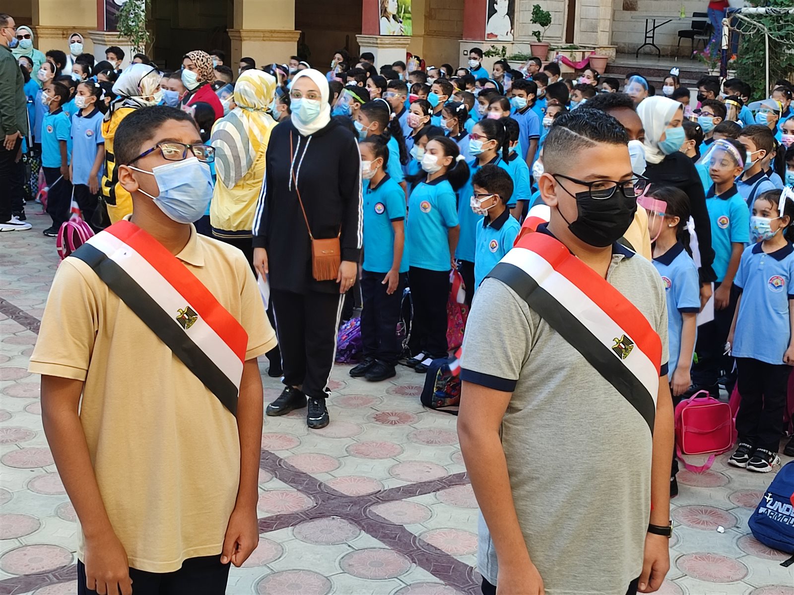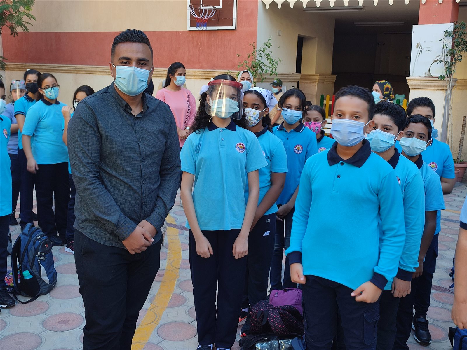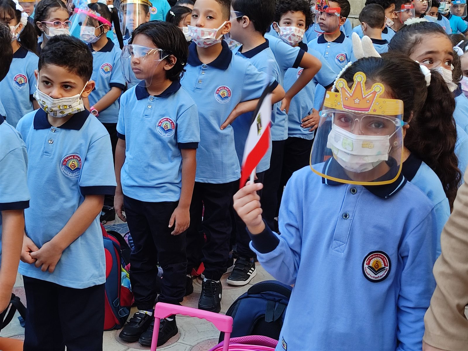 ومن جانبه تفقد موريس فريد مدير المدرسة اليونانية الحديثة ببورسعيد بنفسه طابور الصباح للتأكد بالتزام جميع الطلاب بارتداء الكمامة أو واقي الوجه «فيس شيلد».