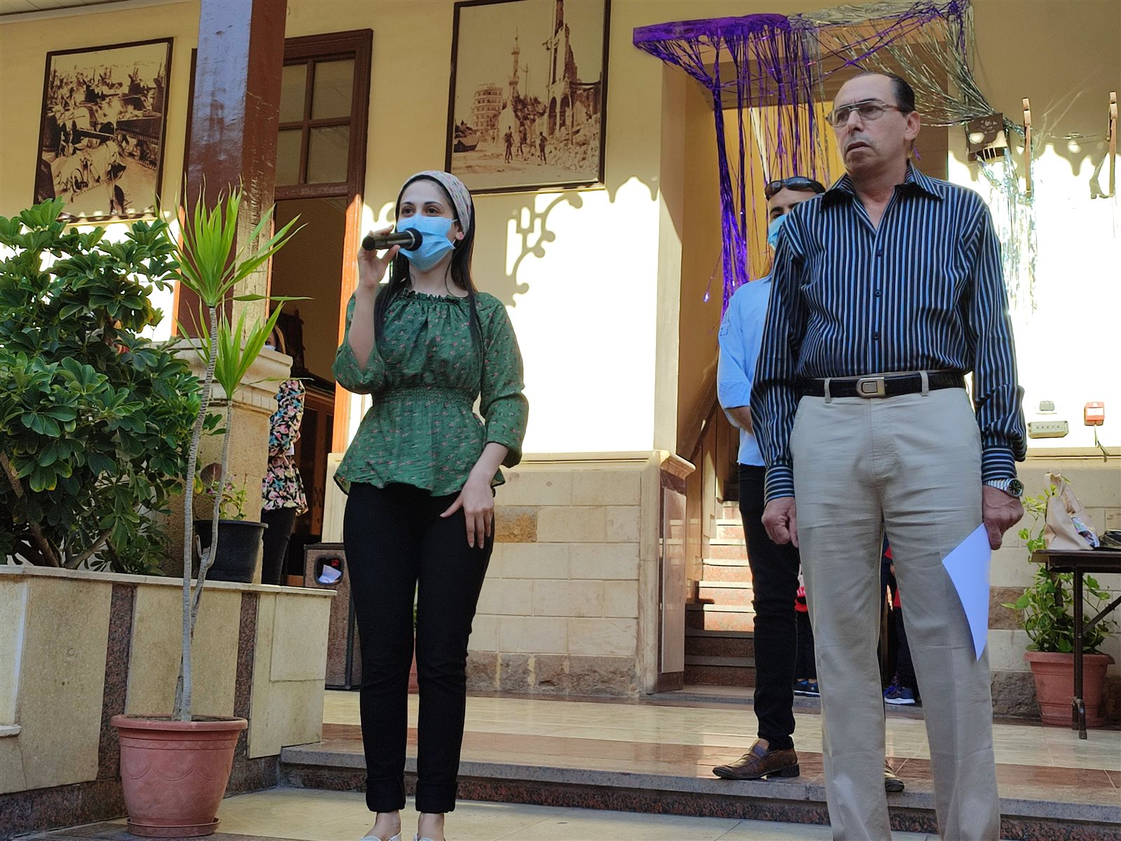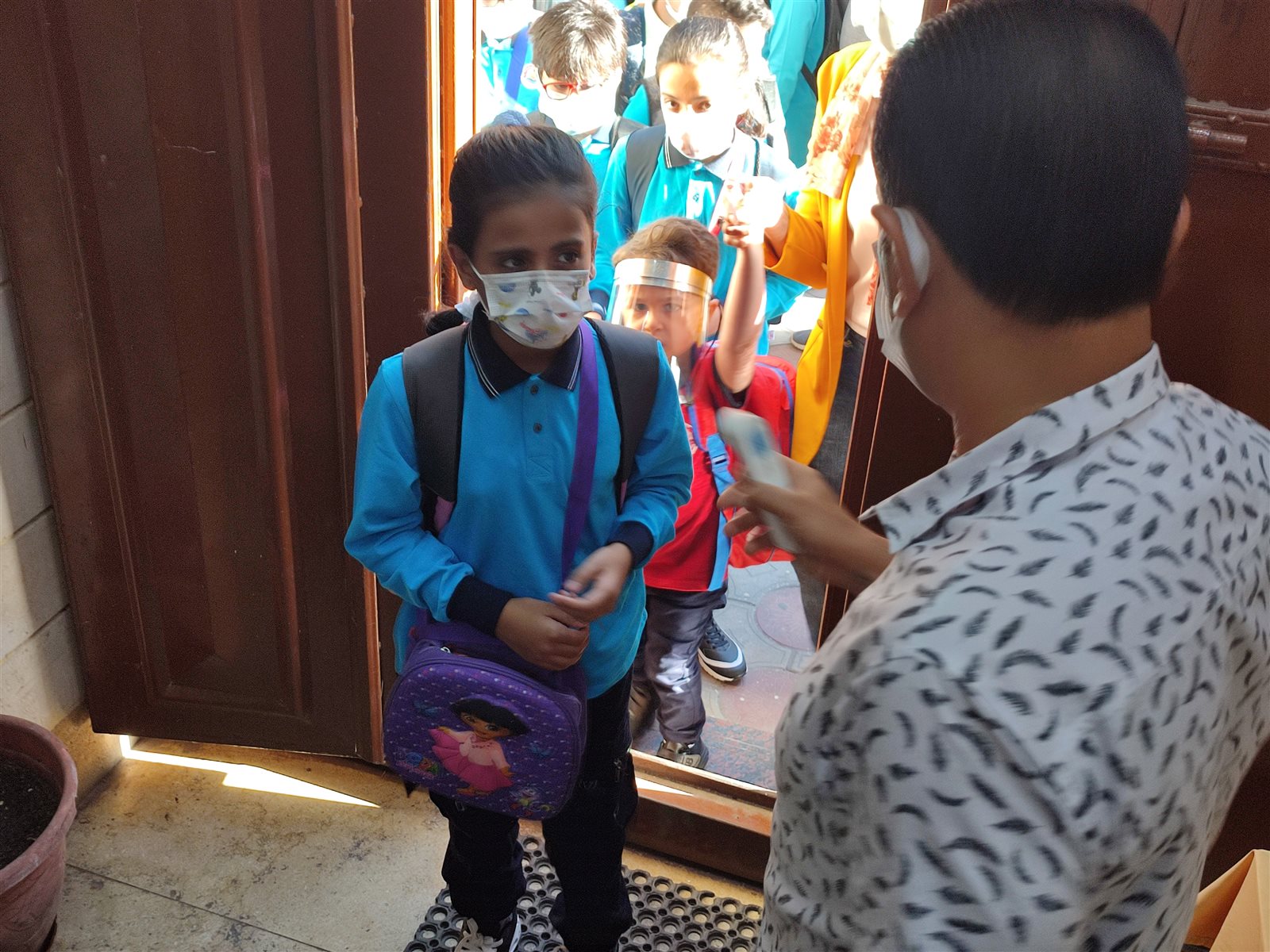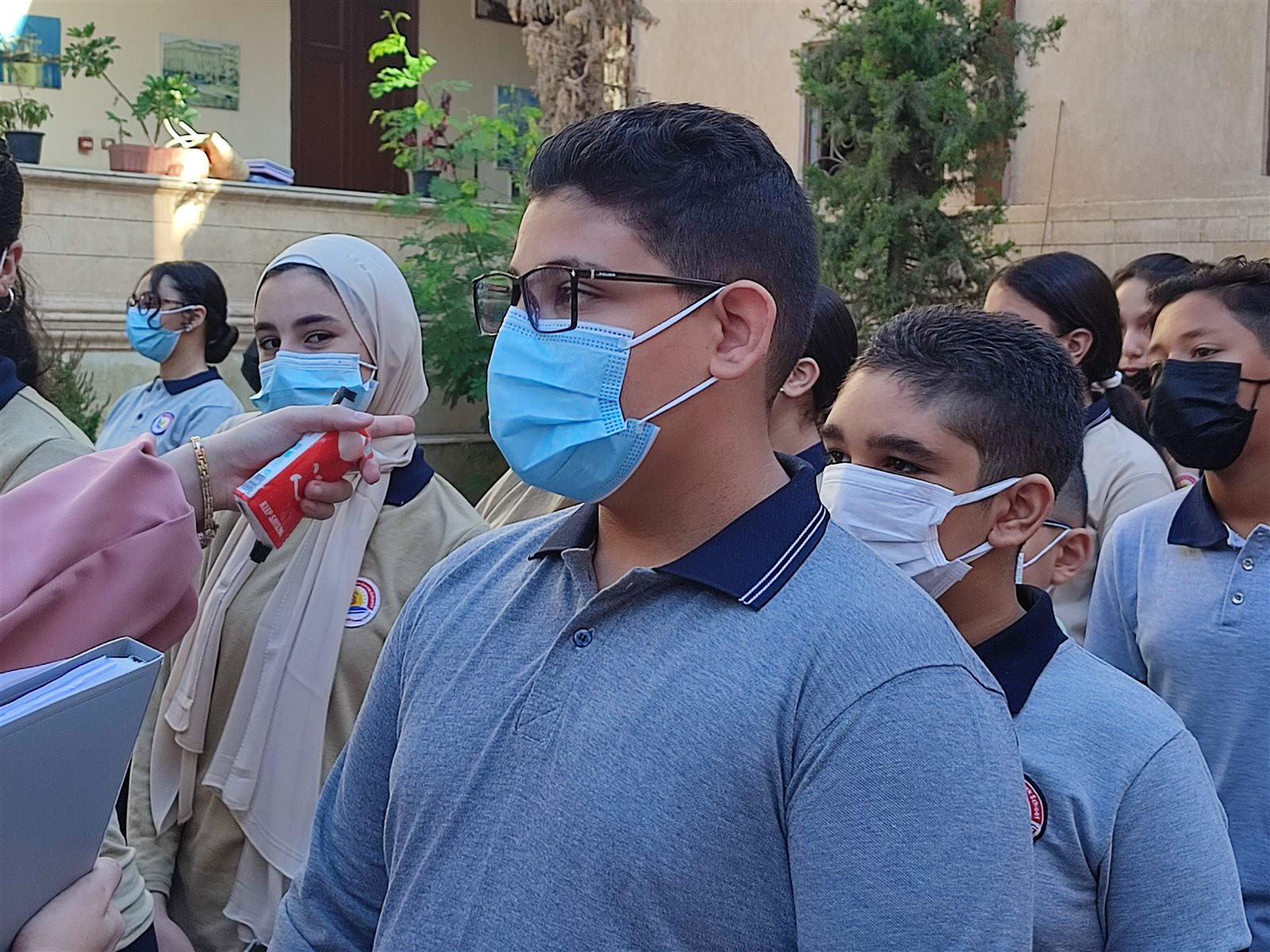 ومن جانبه تفقد موريس فريد مدير المدرسة اليونانية الحديثة ببورسعيد بنفسه طابور الصباح للتأكد بالتزام جميع الطلاب بارتداء الكمامة أو واقي الوجه «فيس شيلد».
