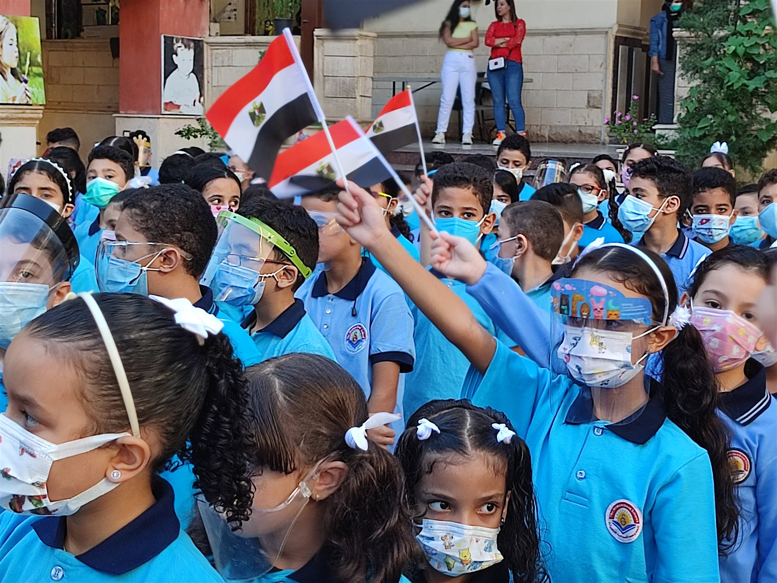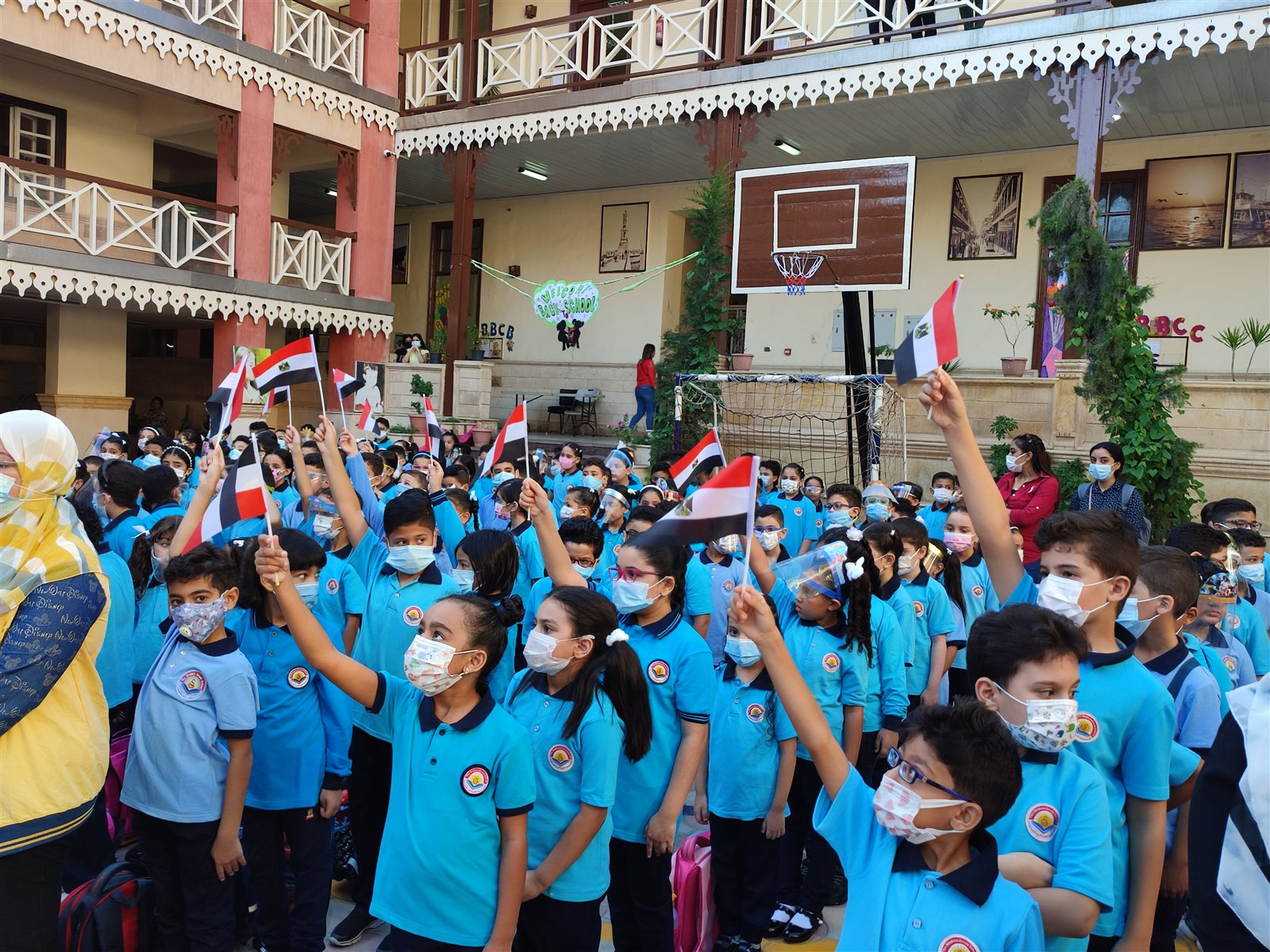 حاجة تفرح.. طابور الصباح باليونانية الحديثة ببورسعيد في أول أيام عامها الدراسي | صور