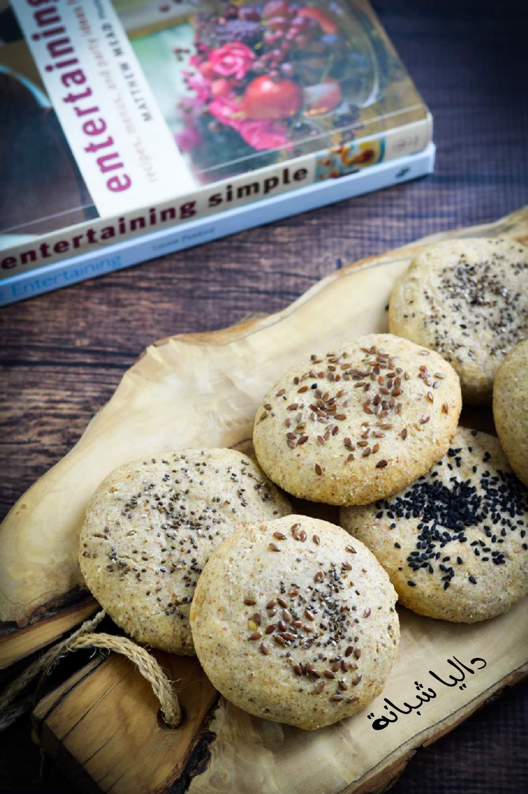 •يمكن اضافه حبوب حسب رغبتكم "في هذه الوصفة تم إضافة بذور الشيا وحبة البركة وبذور الكتان على الوجه.