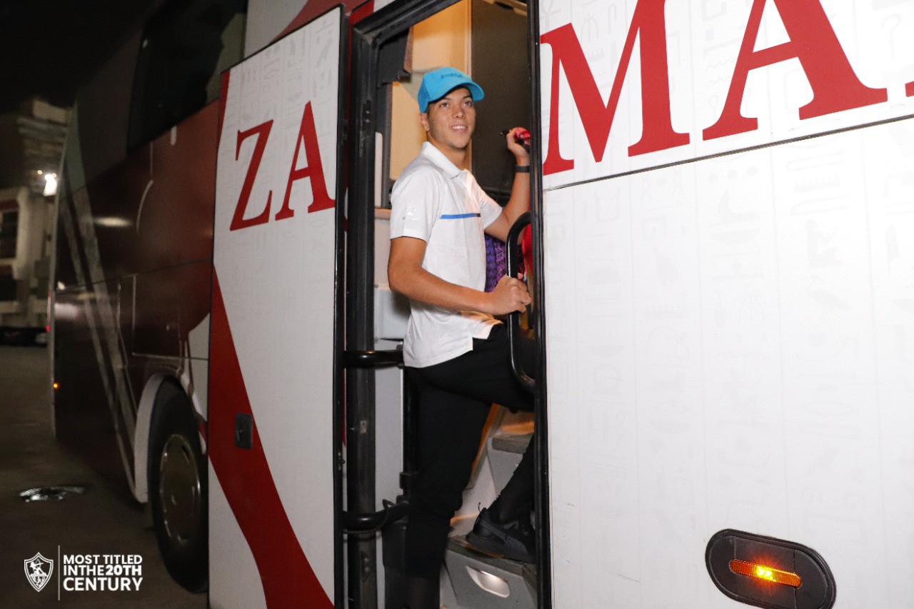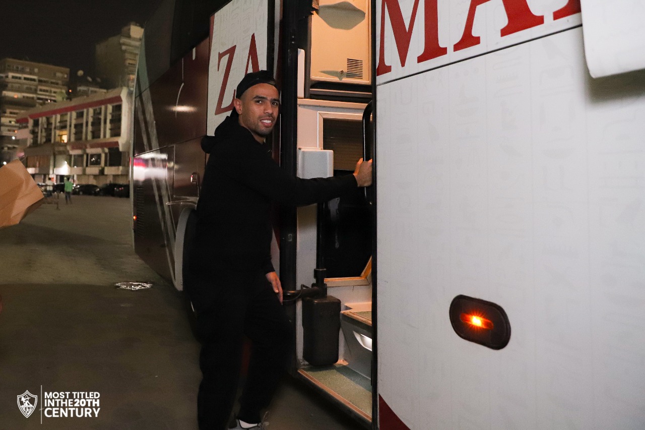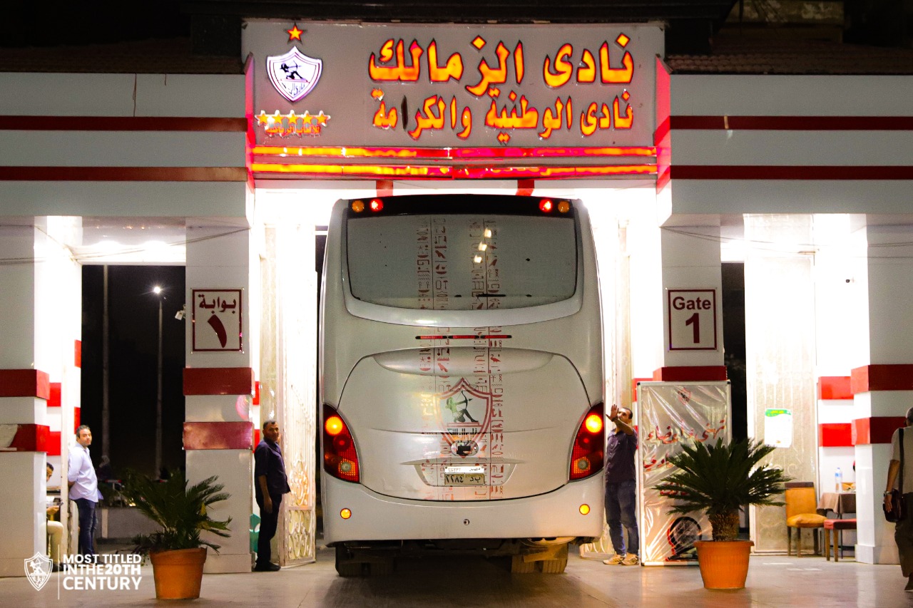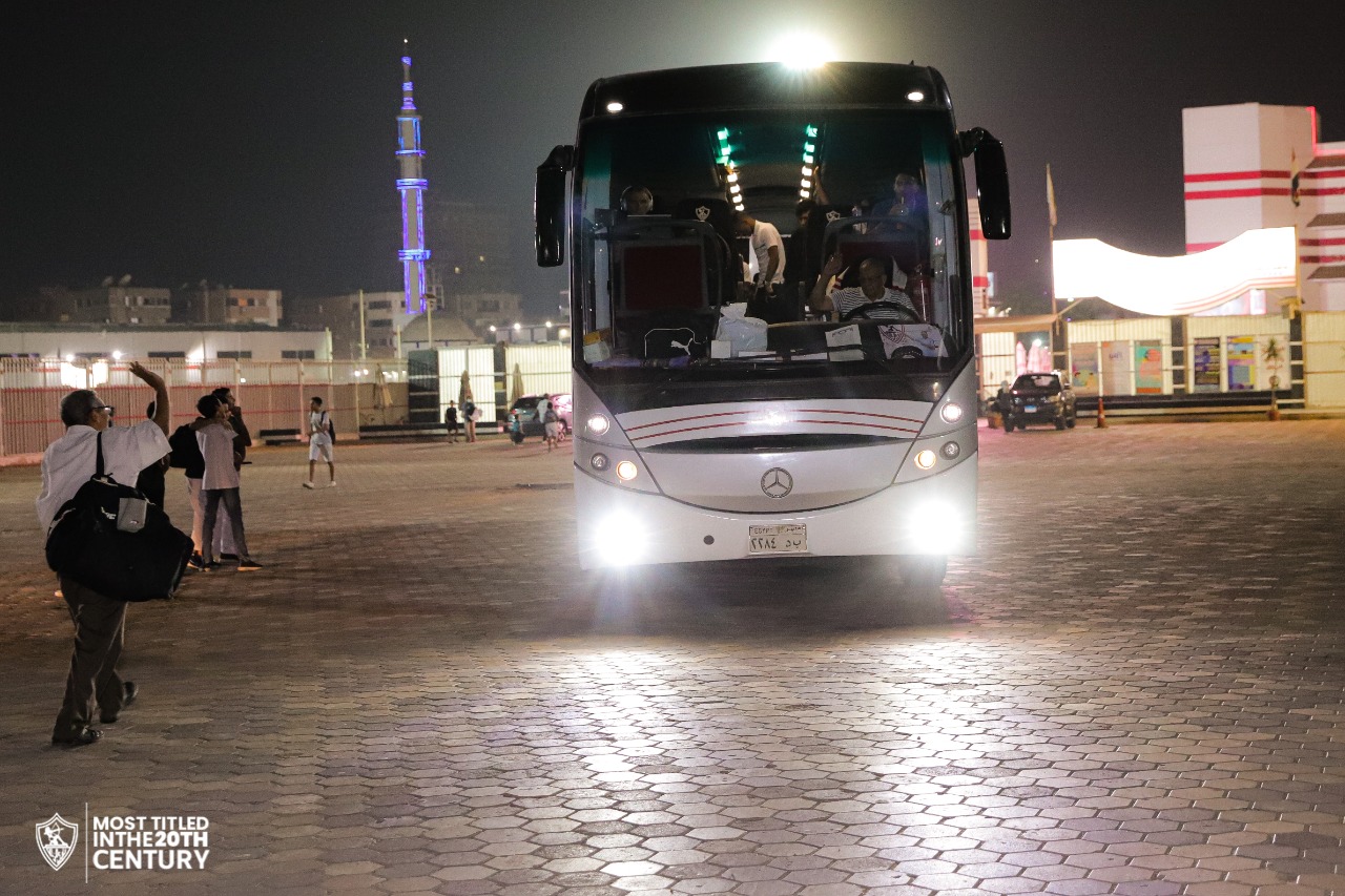 أتوبيس الزمالك يتوجه إلى مطار القاهرة استعدادًا للسفر لكينيا | صور