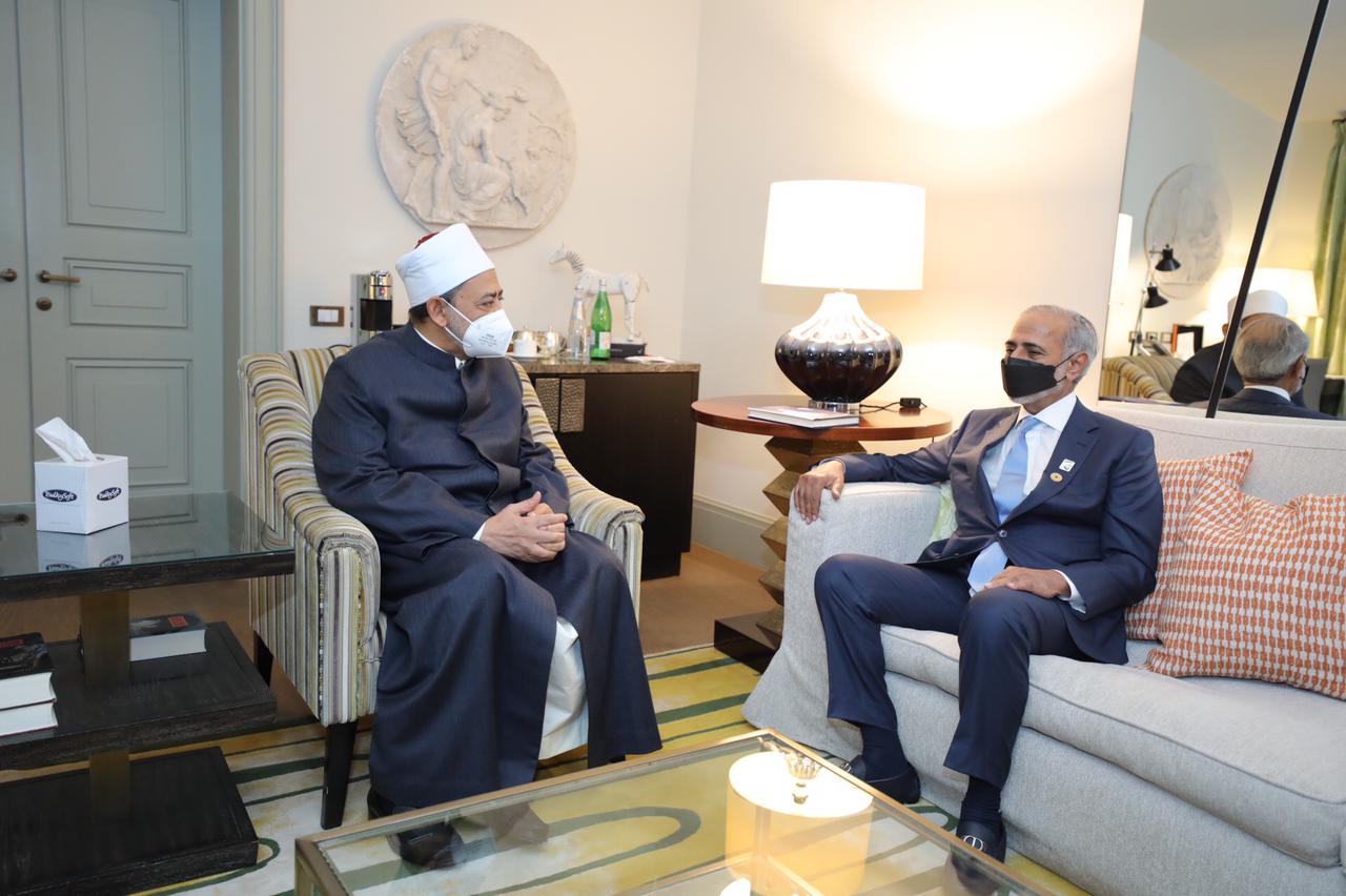 كما التقى فضيلة الإمام الأكبر الدكتور أحمد الطيب، شيخ الأزهر الشريف، الرئيس سيرجيو ماتاريلا، رئيس دولة إيطاليا، بمقر رئاسة الجمهورية بالعاصمة الإيطالية روما. وتناول اللقاء أبرز القضايا على الساحة العالمية، وسبل تعزيز دور القادة الدينين في المشاركة في حل أزمات العالم المعاصر بما يمتلكونه من تأثير قوي، كما تطرق الحديث لتفاقم أزمة جائحة كورونا، وأكد الطرفان أهمية التضامن العالمي في مواجهة كورونا وإقرار سياسة عادلة لتوزيع اللقاحات؛ خاصة فيما يتعلق بالقارة الإفريقية، كما تناول اللقاء أيضًا التغير المناخي وسبل تعزيز مبدأ المسؤولية المشتركة بين الدول المتقدمة والدول النامية للحد من آثار التغير المناخي على استدامة الموارد البيئية.