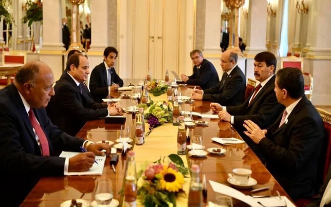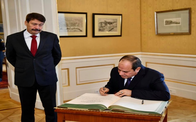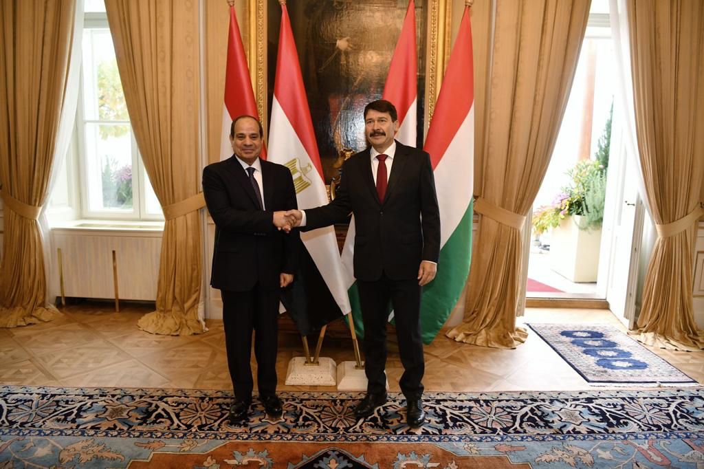 وقال السفير بسام راضي المتحدث الرسمي باسم رئاسة الجمهورية بأن الرئيس أجرى مباحثات منفردة تلتها مباحثات موسعة مع رئيس المجر، حيث أعرب فى مستهلها عن تقدير مصر لحفاوة الاستقبال المجري، مشيدًا بعلاقات الصداقة المصرية المجرية المتينة، وما بلغته من مستوى متقدم على مختلف الأصعدة خلال الفترة الأخيرة، ومعربًا عن تطلع مصر لتعميقها وتعزيزها، لا سيما على المستويين الاقتصادي والتجاري من خلال تعظيم حجم الاستثمارات المجرية في مصر.