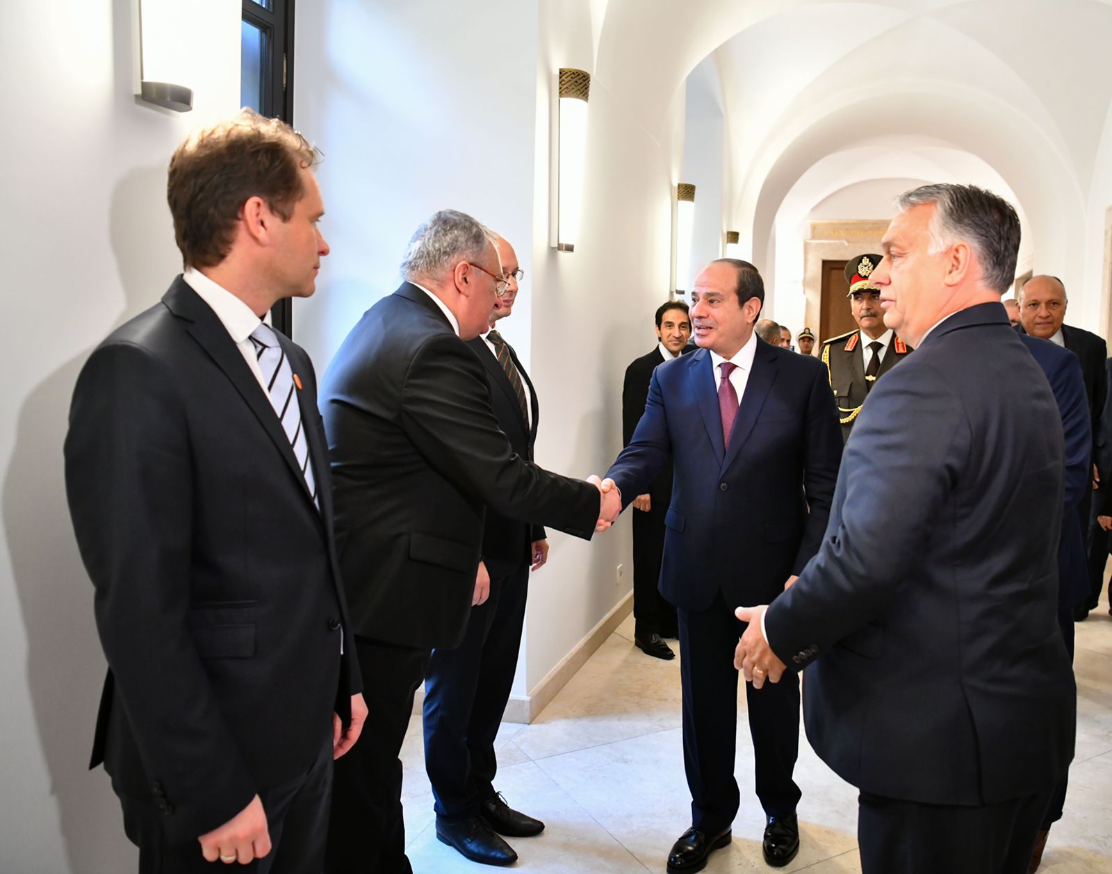 وقال السفير بسام راضي المتحدث الرسمي باسم رئاسة الجمهورية إن رئيس الوزراء المجري استهل اللقاء بالترحيب بالرئيس صديقًا عزيزًا في المجر، معربًا عن تقدير بلاده لمصر قيادةً وشعبًا، ومشيدًا بالعلاقات الثنائية الوثيقة التي تربط بين مصر والمجر، مع تأكيد حرص بلاده على مواصلة الارتقاء بتلك العلاقات وتعزيز التعاون والتنسيق بين البلدين الصديقين على جميع المستويات، لا سيما في ضوء دور مصر المحوري كركيزة للاستقرار والأمن والسلام في الشرق الأوسط وأفريقيا.