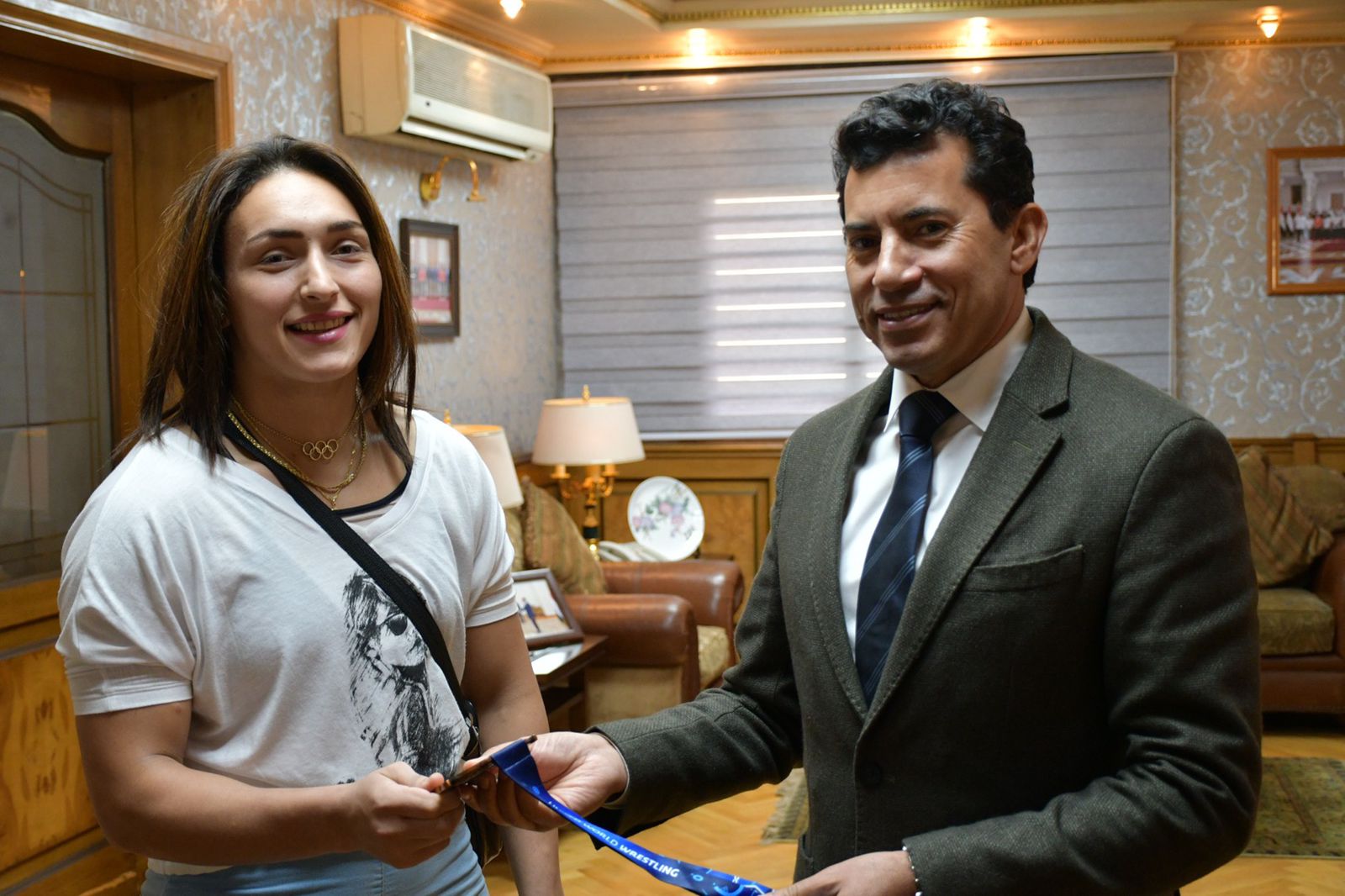 وزير الرياضة يستقبل سمر حمزة بعد حصولها على برونزية العالم للمصارعة