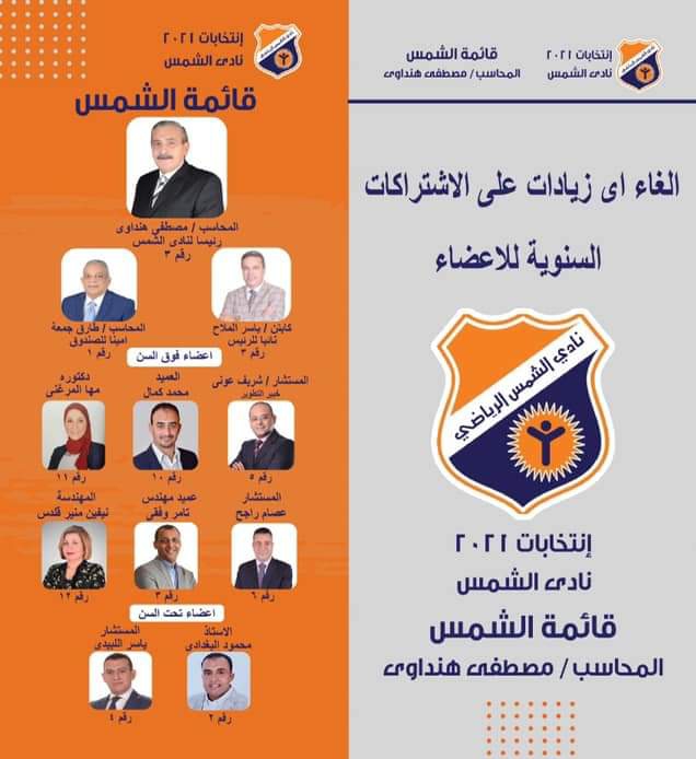 يتوجه أعضاء الجمعية العمومية بنادي الشمس صباح الجمعة لاختيار مجلس إدارة جديد لمدة اربع سنوات قادمة.