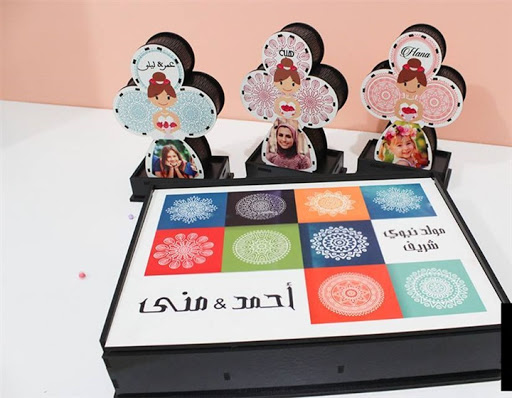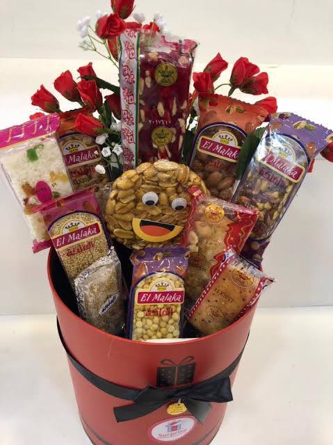 ومحلات أخرى صممت هدية عبارة عن صندوق خشبي منقوش عليه اسم صاحب الهدايا، وتضع بداخله زهور ملونة، بالإضافة إلى الأشكال المختلفة من الحلوى المفضلة، مع كتابة إهداء وبداخله لمبة.