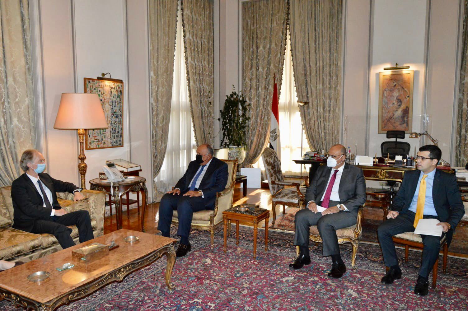 التقى وزير الخارجية سامح شكري، اليوم ١٤ أكتوبر، مبعوث الأمم المُتحدة الخاص إلى سوريا جير بيدرسون.