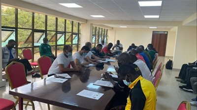 وأدى لاعبو الفريق الأول لكرة القدم بنادي الزمالك تدريبات بدنية وإطالات بفندق الإقامة قبل التحرك لاستاد نيايو الوطني في العاصمة الكينية نيروبي لخوض التدريب الأساسي استعدادا للقاء توسكر الكيني.
