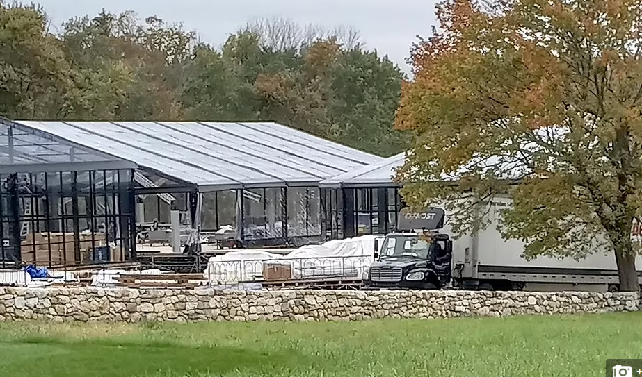 نشرت صحيفة "ديلي ميل" البريطانية صورًا خاصة للاستعدادات الأخيرة لحفل زفاف جينيفر جيتس، غدا السبت والتي أظهرت الخيام التي نُصبت في مزرعة خيول جينيفر التي تبلغ مساحتها 124 فدانًا.