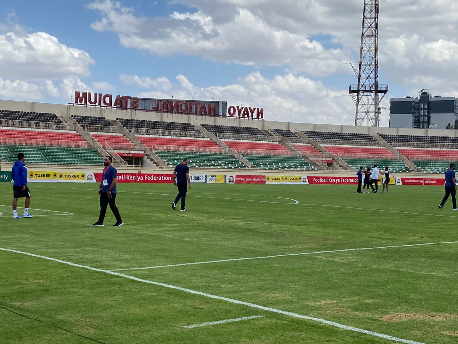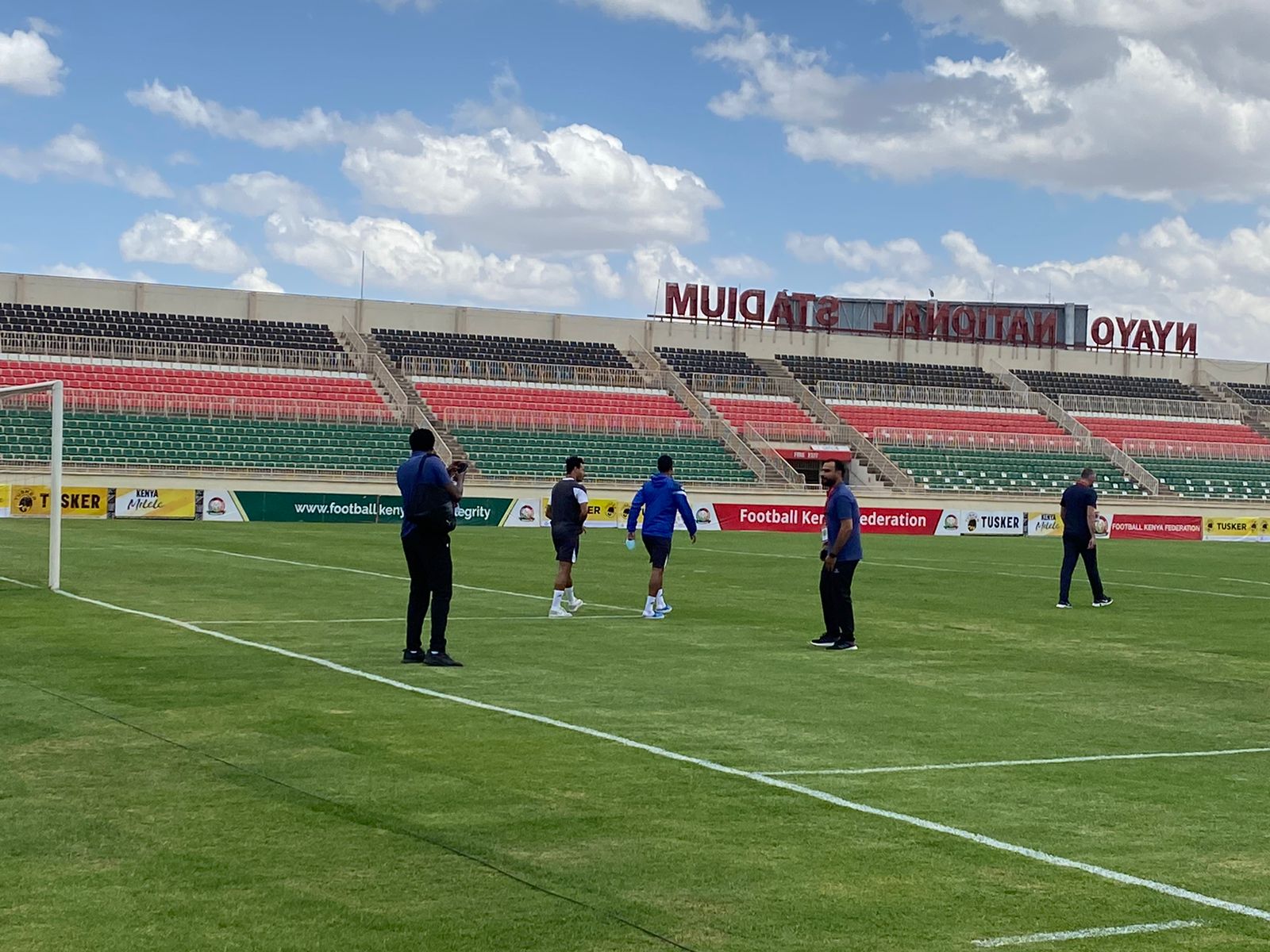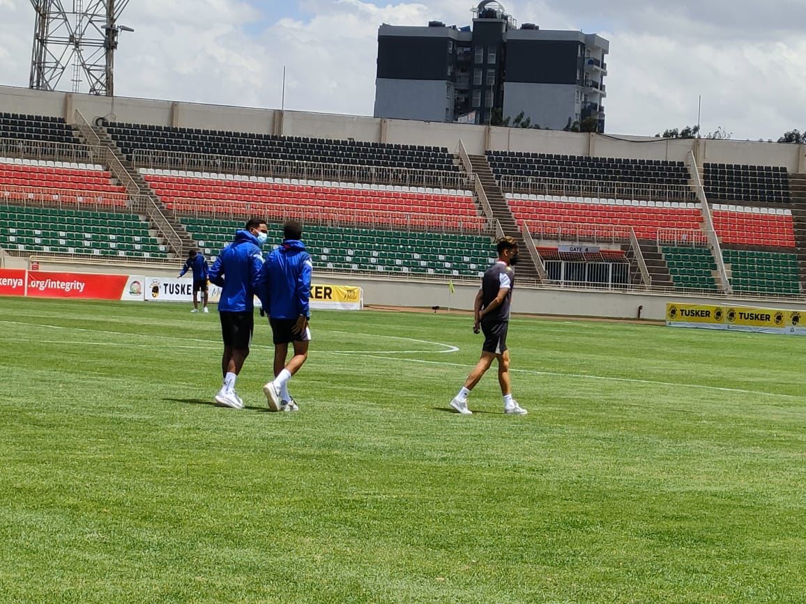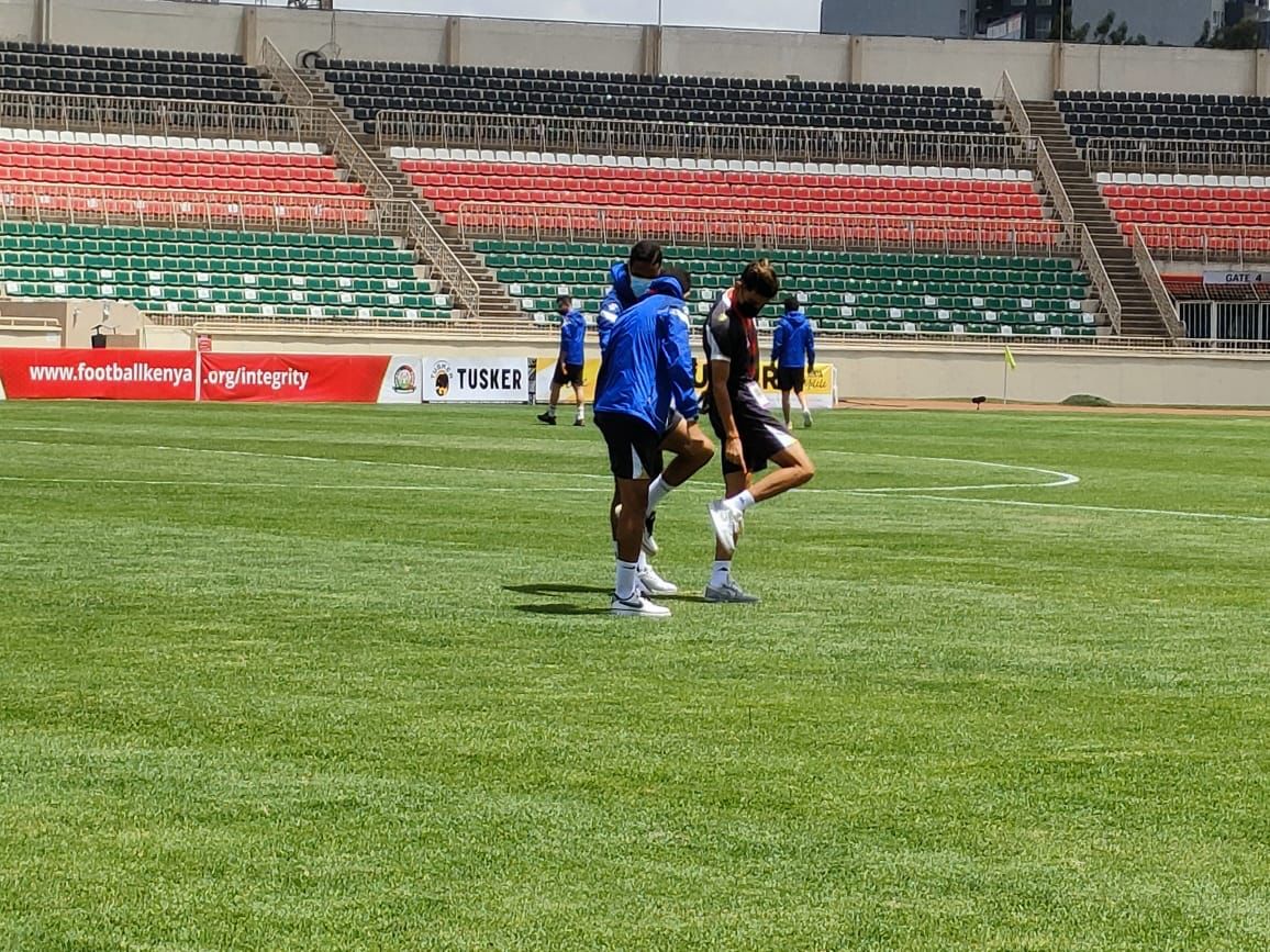 وكان لاعبو الفريق وصلوا للاستاد بعد خوض تدريبات بدنية واطالات بفندق الإقامة وتناول وجبة الغداء استعدادا لخوض المباراة المرتقبة أمام بطل كينيا.