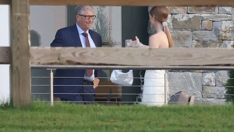 ونشرت "فوكس" صورًا لبيل جيتس وهو يشارك ابنته الكبرى ذات الـ25 عامًا رقصة يتعانقان فيها خلال بروفة زفافها.