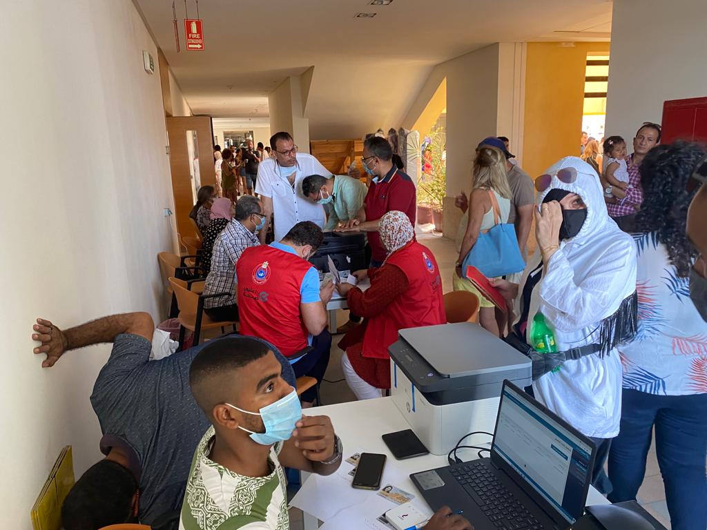 وقال الدكتور خالد مجاهد، إنه تم تخصيص 10 وسائل انتقال تحمل شعار وزارة الصحة والسكان، لنقل الزوار من الفنادق بعد إتمام عملية التسجيل لتلقي اللقاح في مركز التطعيم ثم العودة إلى الفندق مجددًا، وبينهم سيارات "جولف" ملصق عليها شعار وزارة الصحة والسكان، وتضم فرق طبية، تجوب أنحاء الجونة وأماكن الازدحام أو التكدس لتقديم خدمات طبية عاجلة أو طوارئ وإسعافات أولية.