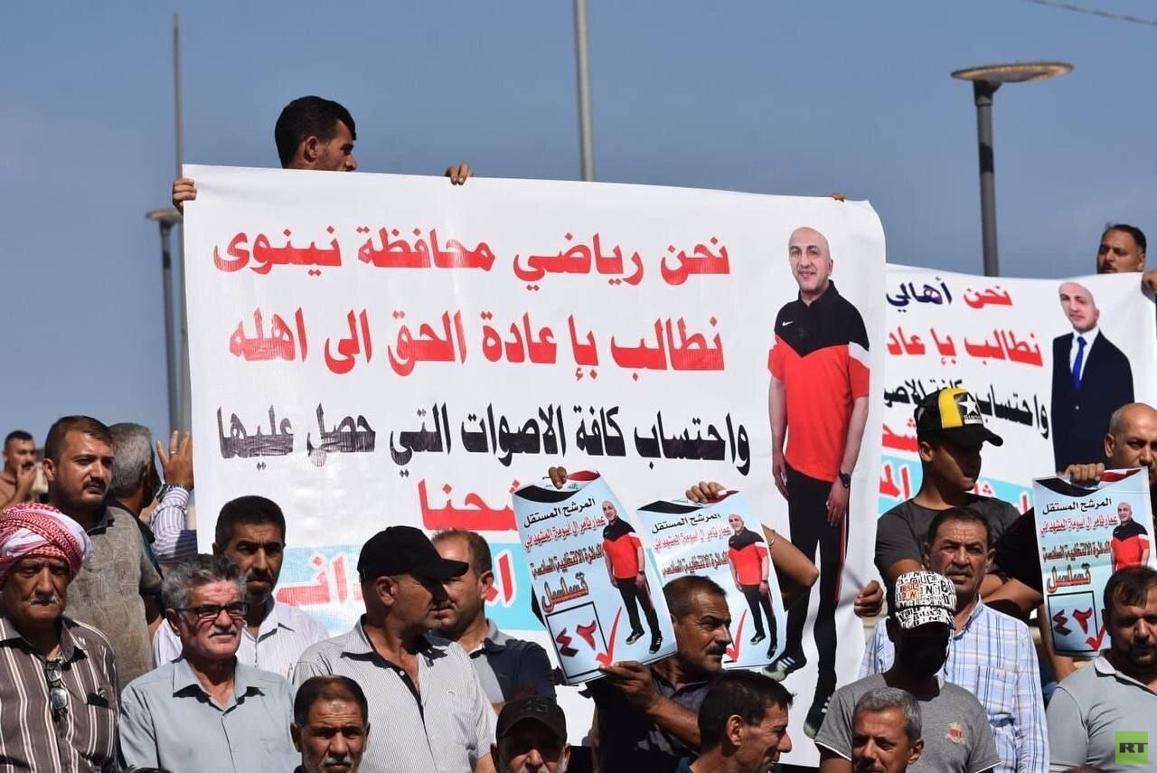 واحتشد مئات العراقيين في محافظات بغداد والبصرة ونينوى، في احتجاجات واسعة على نتائج الانتخابات وقطعت الجماهير الغاضبة الشوارع وأحرقت إطارات السيارات.
