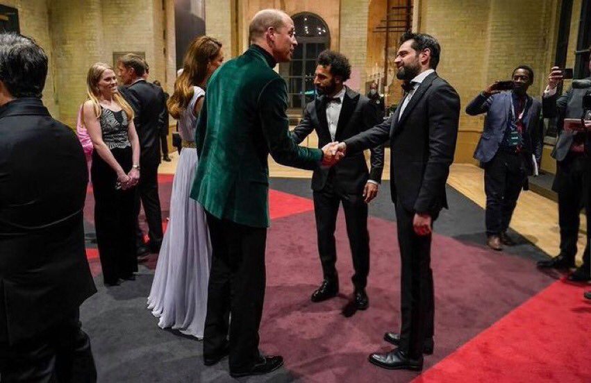 وتواجد محمد صلاح في الحفل رفقة وكيل أعماله رامي عباس، وشوهد وهو يتحدث مع الأمير ويليام وزوجته كاثرين دوقة كامبريدج.