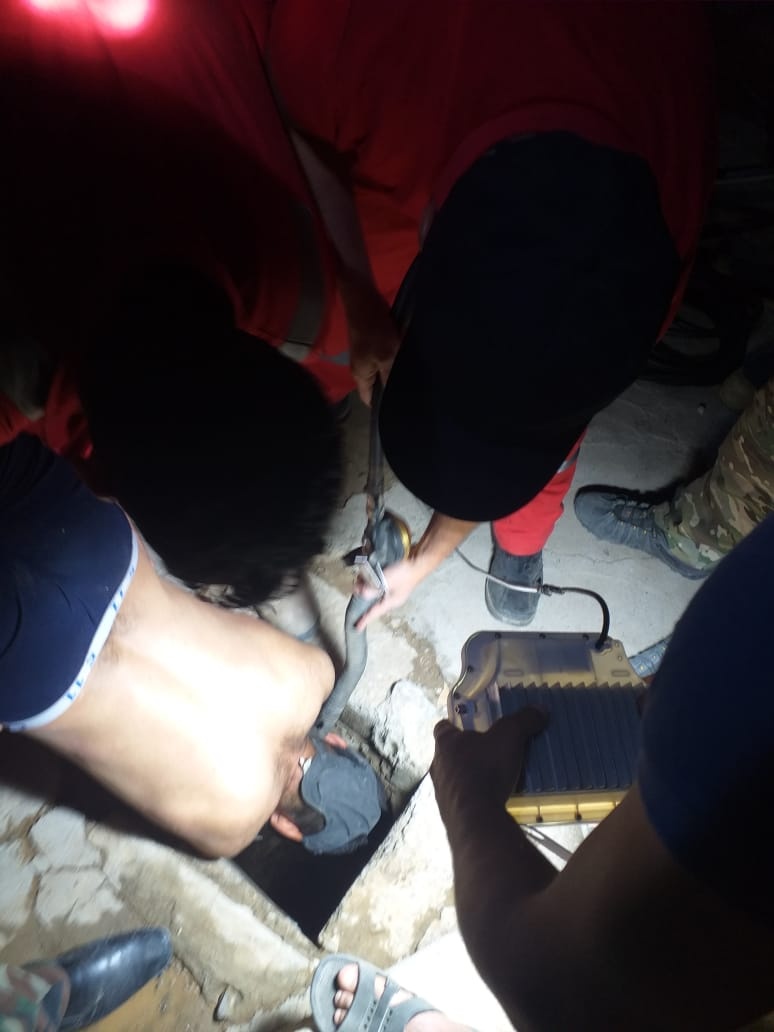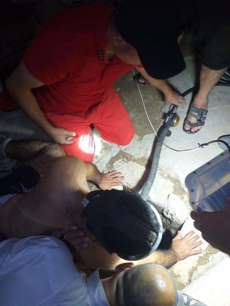 وذكر الدفاع المدني عبر صفحته على فيسبوك أنه "استحال إنزال رجل من الدفاع المدني نظرًا لضيق البئر لتتم الاستعانة بفتى متطوع نحيل الجسم تم ربط قدميه وإنزاله رأسيًّا إلى أسفل البئر ليتمكن من الوصول إلى الطفل، وحمله بإحكام ليتم بعدها رفع الاثنين".