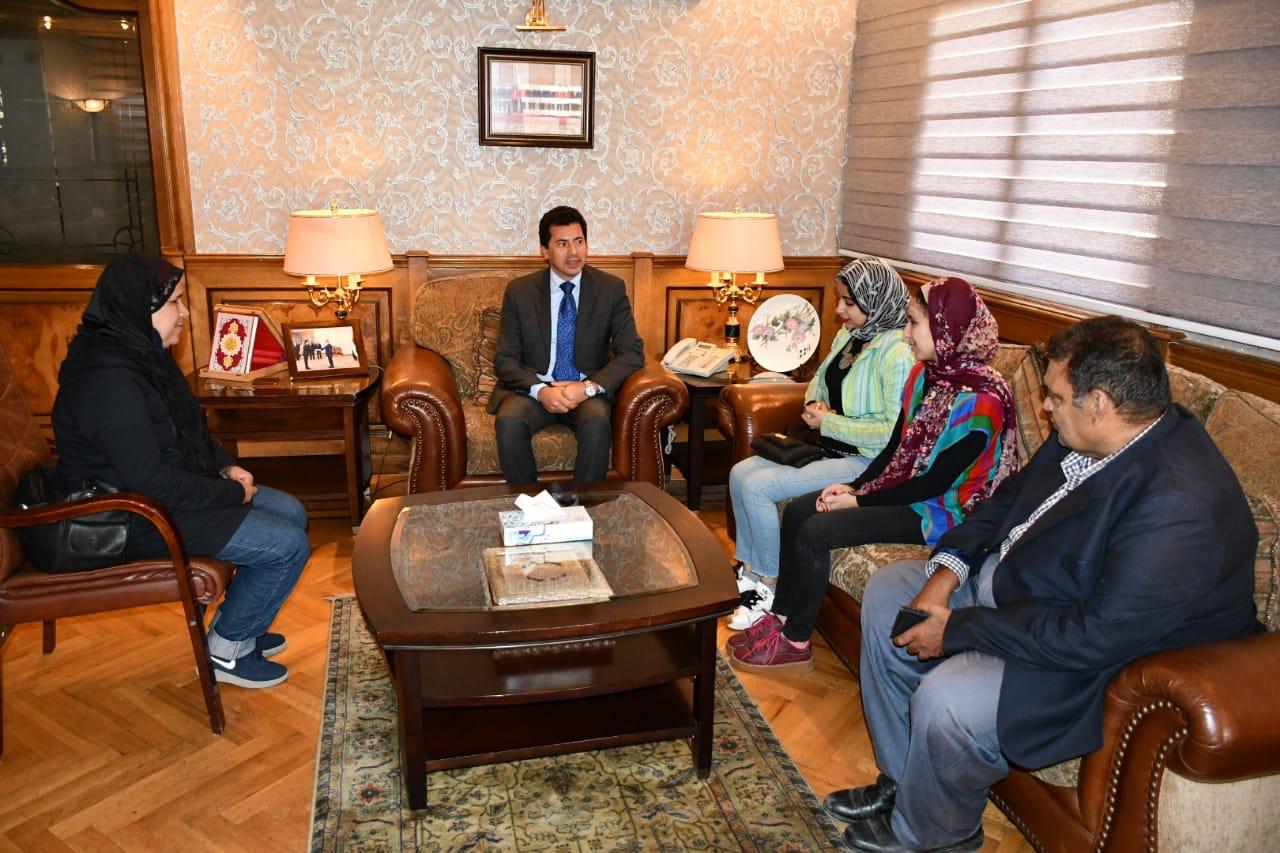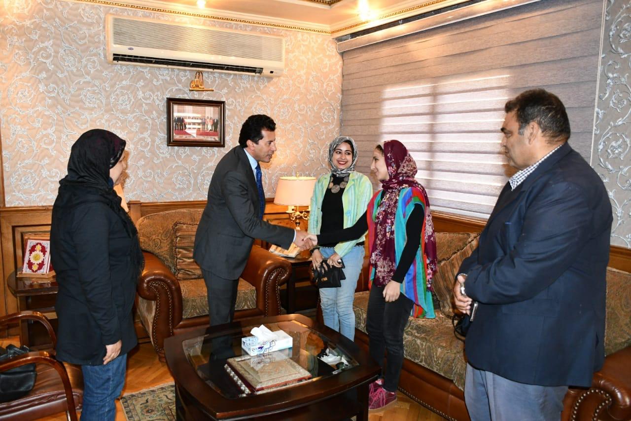 وزير الرياضة يلتقي أمل توفيق لاعبة رفع الأثقال بعد تعرضها لحادث تصادم | صور