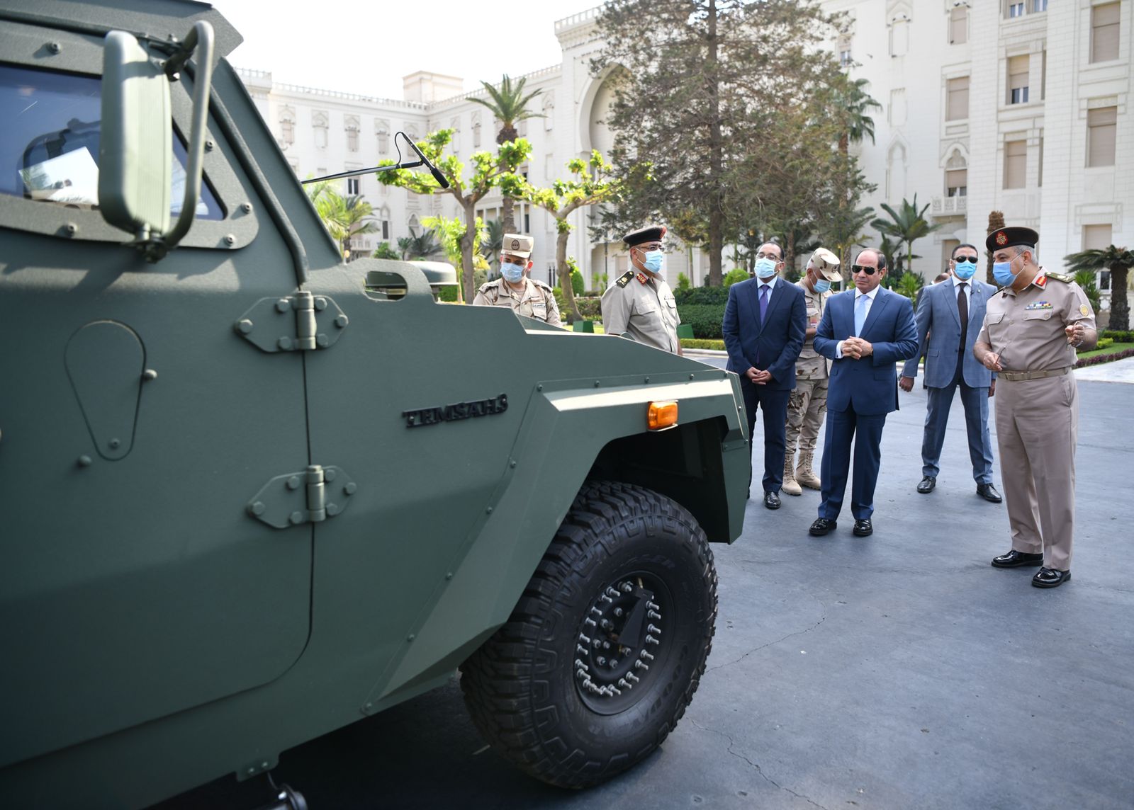 وقال السفير بسام راضي المتحدث الرسمي باسم رئاسة الجمهورية بأن الرئيس تفقد نماذجًا مختلفة من المركبات المدرعة التي تم تطويرها بمصانع القوات المسلحة طبقًا لأحدث نظم التصميم والتصنيع، والتي روعي في تصميمها تعظيم قدرات هذه المركبات من حيث تعدد الاستخدامات، سواء للقوات المسلحة أو قوات الشرطة المدنية، فضلًا عن قدرتها على المناورة وارتفاع مستوى الحماية ضد الموانع الأرضية.