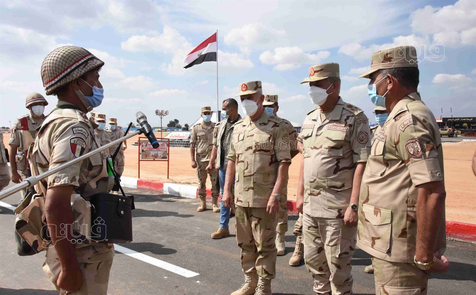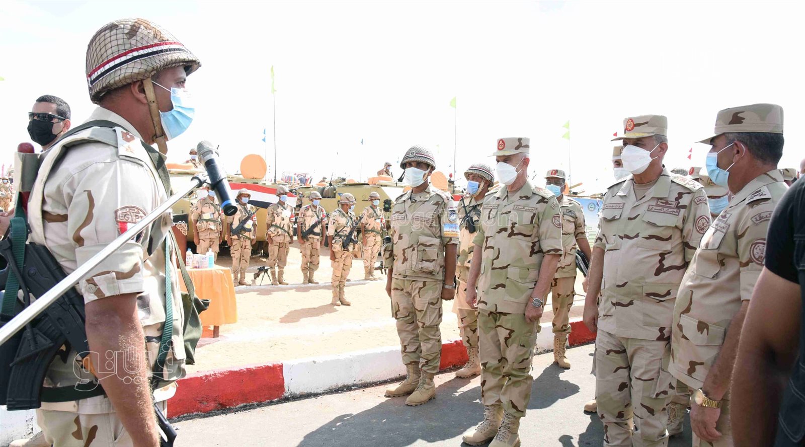 وقام القائد العام للقوات المسلحة بالمرور على القوات المصطفة للإطمئنان على جاهزيتها وقدرتها على تنفيذ كافة المهام والوقوف على مستوى الكفاءة الفنية والقتالية للأسلحة والمعدات، ونقل تحيات وتقدير الرئيس عبدالفتاح السيسى رئيس الجمهورية القائد الأعلى للقوات المسلحة لأبطال الجيش الثانى الميدانى لما يبذلونه من جهود وتضحيات بالغالى والنفيس من أجل حماية الوطن وصون مقدساته، مشيدًا بما لمسه من الإستعداد الجاد والروح المعنوية لكافة العناصر المشاركة بالتفتيش، معربًا عن إعتزازه بعطائهم وجهودهم المخلصة للدفاع عن أمن الوطن وإستقراره، وطالبهم بالحفاظ على روحهم المعنوية العالية وضرورة الإهتمام بالتدريب المستمر والمحافظة على الأسلحة والمعدات لتكون القوات المسلحة فى أعلى درجات الإستعداد القتالى من أجل حماية حدود مصر على كافة الإتجاهات الإستراتيجية.