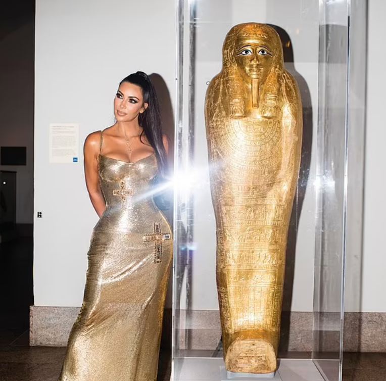 وتابعت الصحيفة، أن كيم كارداشيان لم تكن تعرف وهي تقف بفستانها الذهبي لتلتقط صورة في حفل الـ"ميت جلا" إلى جانب تابوت فرعوني ذهبي في متحف "ميتروبوليتان" بمدينة نيويورك الأمريكية عام 2018 أن الصورة ستكون سببًا في حل لغز بيع التابوت الذهبي إلى المتحف من قبل لصوص مقابل 4 ملايين دولار.