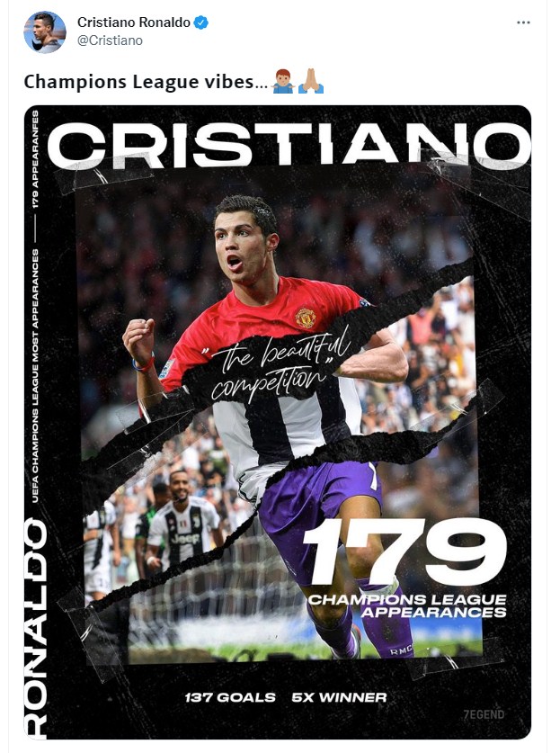 وكان نجم نادي مانشستر يونايتد كريستيانو رونالدو، وجه رسالة إلى جمهور مانشستر، محتفيًا عقب فوزه على أتلانتا الإيطالي بنتيجة 3-2، أمس الأربعاء، في الجولة الثالثة من دوري أبطال أوروبا لكرة القدم.