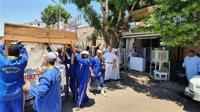 وخلال حملات لرفع الإشغالات بمناطق الجمعية والمزلقان بنطاق المدينة تم مصادرة ٢٠٠ كرسى و٤٠ شيشة وإيداعها مخزن المدينة.