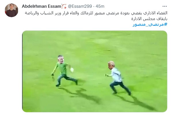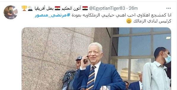 وعلق ابن مصر قائلًا: "#مرتضي_منصور مرتضى منصور هو راجع النادي تاني سامو عليكو".