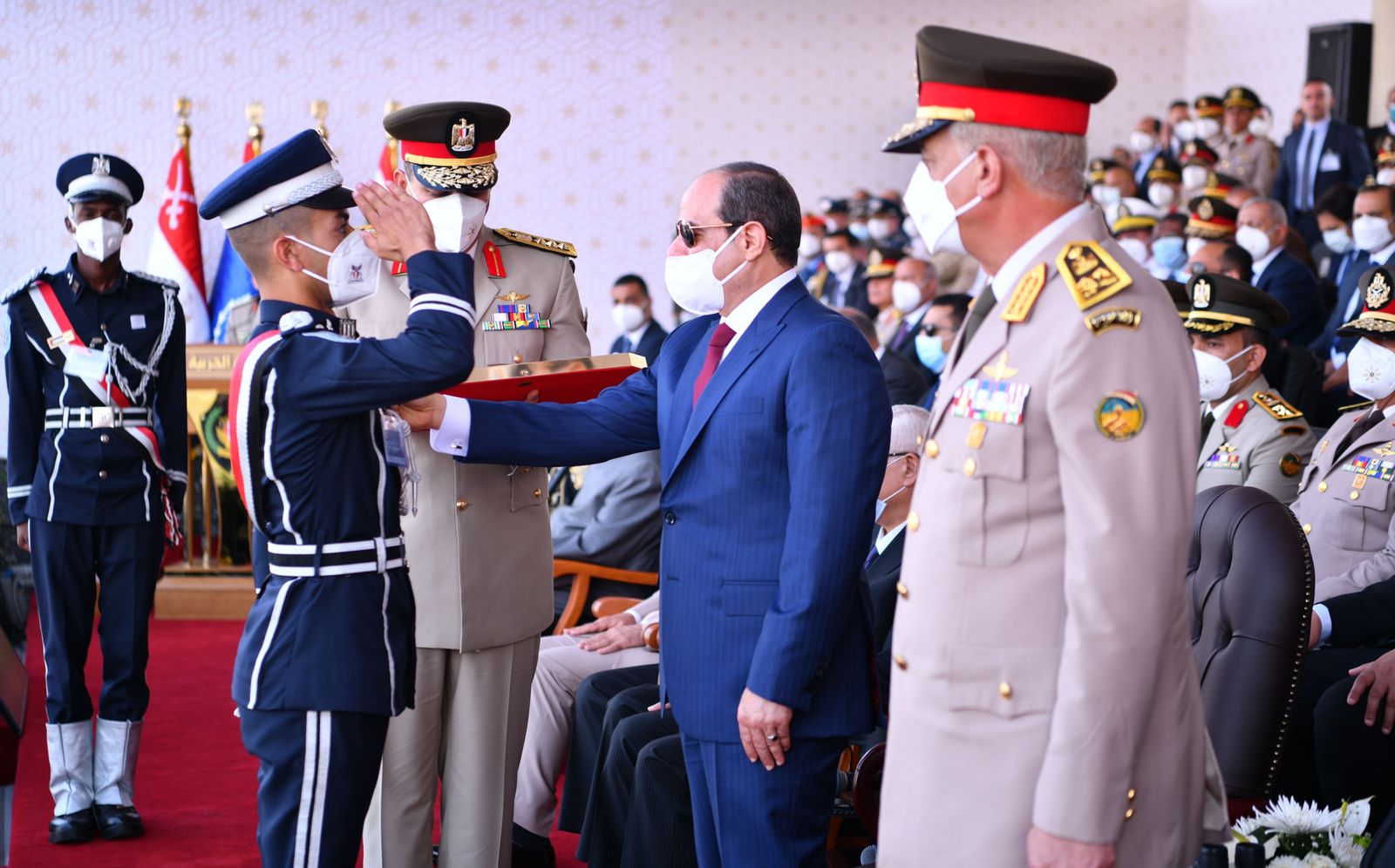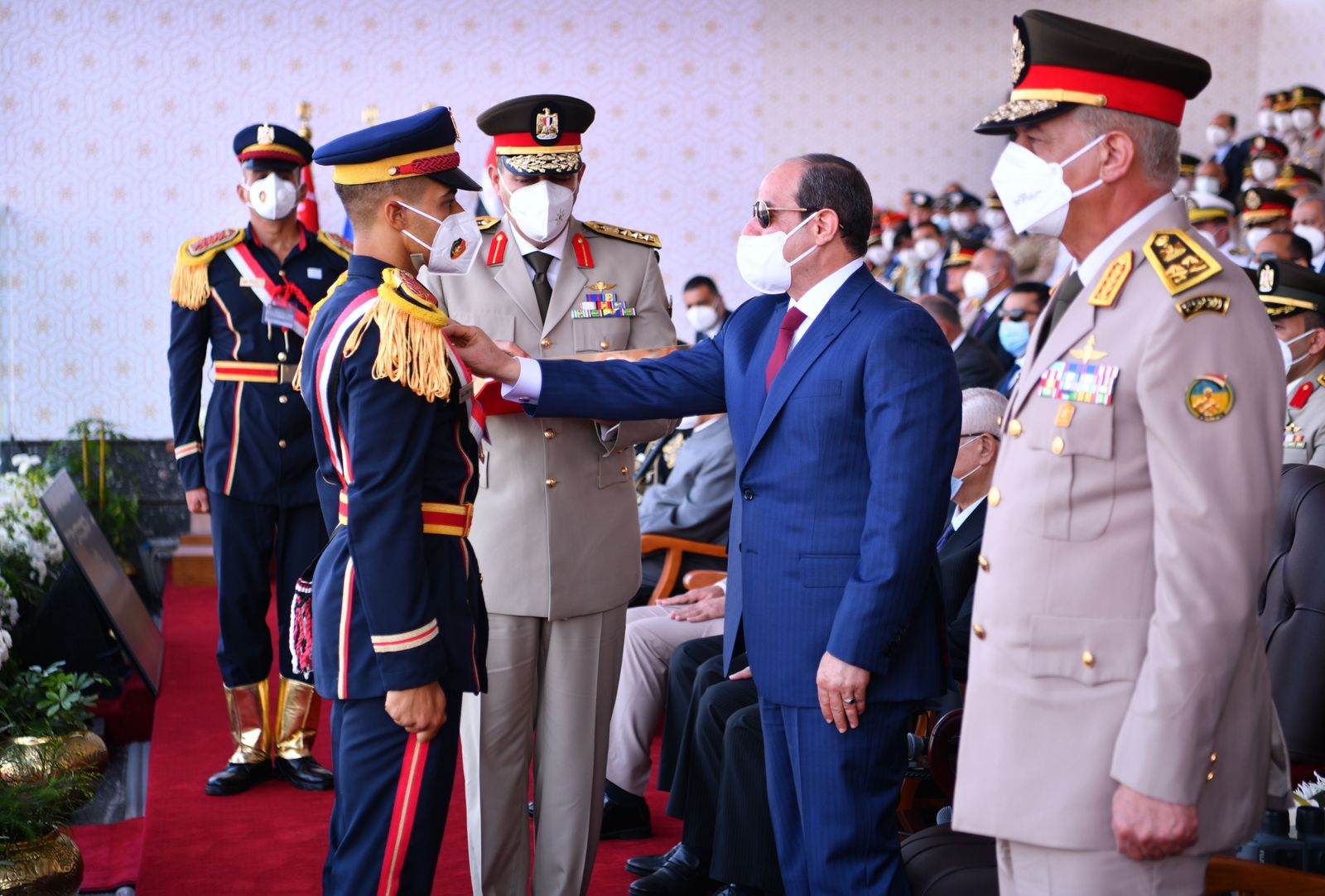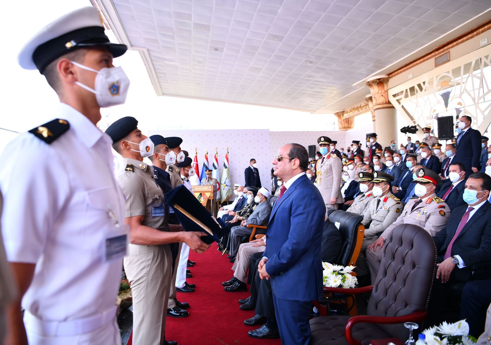 ووجه الرئيس السيسي التهنئة للطلاب الخريجين والأسر خلال حفل تخرج دفعات جديدة من الكليات العسكرية.