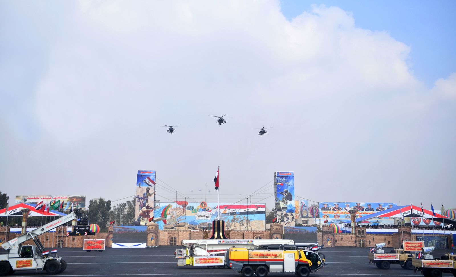 وانطلق حفل تخرج دفعات جديدة لطلاب الكليات والمعاهد العسكرية بالكلية حيث عزفت الموسيقى والسلام الوطني وبدأ الحفل بظهور 5 طائرات هليكوبتر يحملون علم مصر وعلم القوات المسلحة وأعلام الأفرع الرئيسية بالقوات المسلحة، إيذانا ببدء الاحتفال.