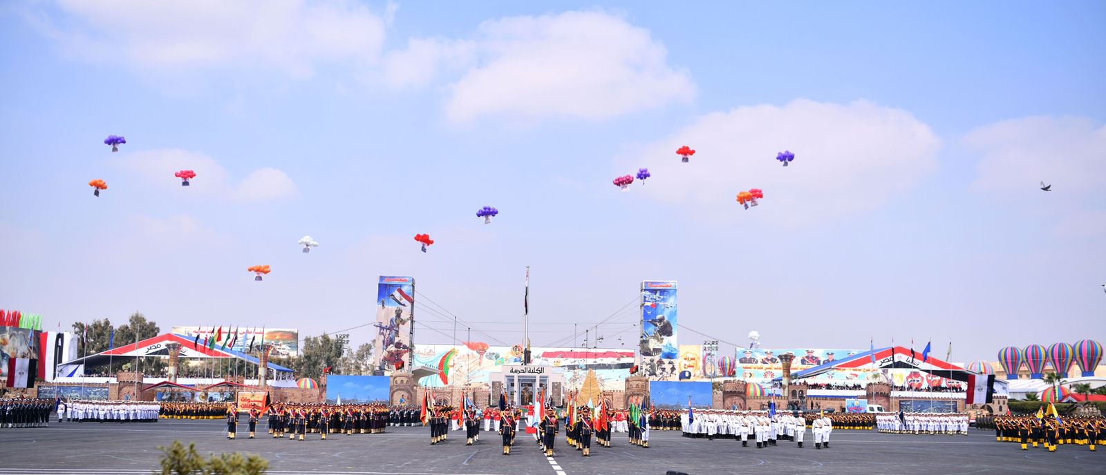 وشكل الطلبة بأجسادهم أرقام دفعاتهم من الكليات والمعاهد العسكرية وهم يؤدون التمرينات المختلفة التي عكست مدى ما اكتسبه الطلبة من مهارات رياضية وبدنية وقوة تحمل عالية، باعتبارها إحدى الركائز الأساسية لبناء الكفاءة القتالية للفرد المقاتل القادر على تنفيذ كافة المهام.