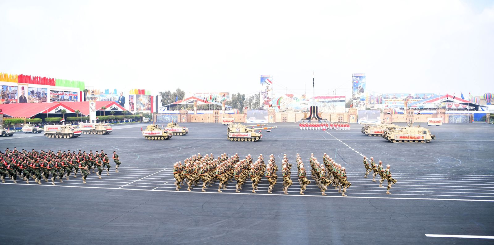 كما شاهد الرئيس السيسي طابور العرض العسكري الذي شاركت فيه مجموعات من طلبة الكلية الحربية من مختلف السنوات الدراسية ومجموعات الخريجين من الكلية البحرية والكلية الجوية وكلية الدفاع الجوى والكلية الفنية العسكرية والمعهد الفني للقوات المسلحة ومجموعة رمزية من طلبة كلية الشرطة في أداء متميز وانضباط عسكري راق يتقدمهم حملة الأعلام.