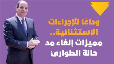 يشار إلى أن الرئيس عبد الفتاح السيسي أعلن إلغاء مد حالة الطوارئ، قائلًا: "يسعدني ان نتشارك معًا تلك اللحظة التي طالما سعينا لها بالكفاح والعمل الجاد، فقد باتت مصر، بفضل شعبها العظيم ورجالها الأوفياء، واحة للأمن والاستقرار في المنطقة".