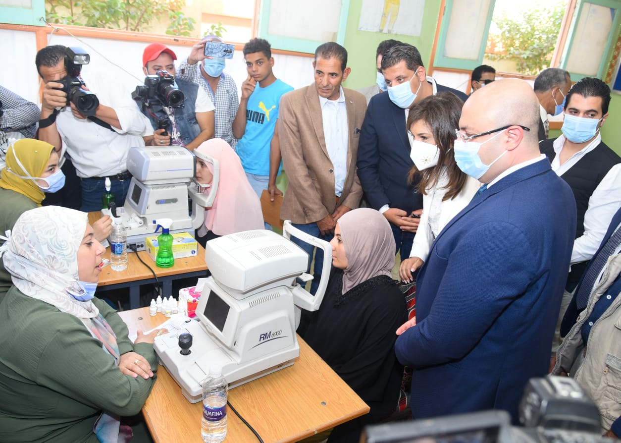 وزيرة الهجرة ومحافظ بني سويف يتفقدان القافلة الطبية في قرية الحرجة
