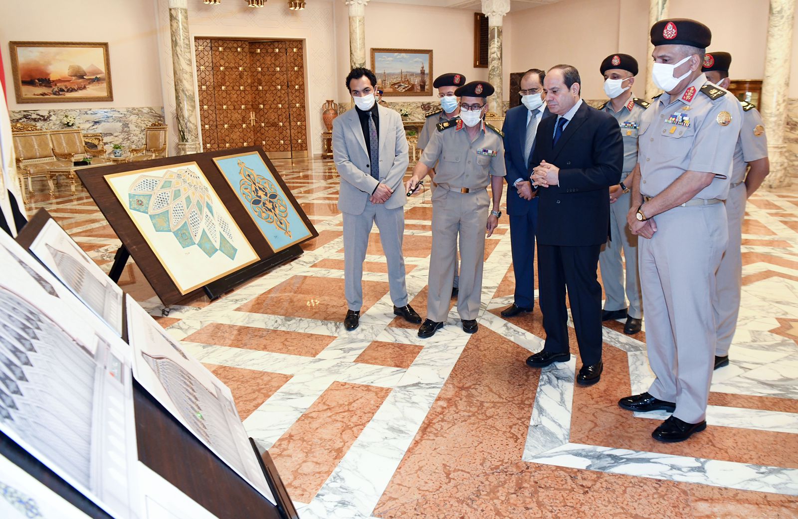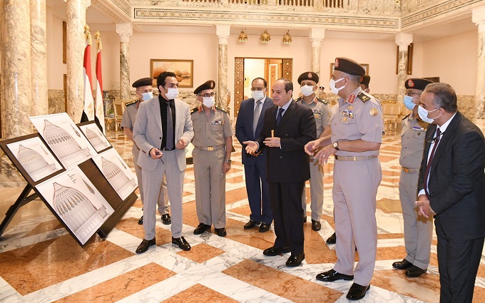 وقال السفير بسام راضي المتحدث الرسمي باسم رئاسة الجمهورية، إنه تم عرض الموقف التنفيذي لعدد من المنشآت بالعاصمة الإدارية الجديدة، خاصةً ما يتعلق بتصميمات قاعة مجلس النواب، فضلًا عن التصميمات الهندسية لمركز مصر الثقافي الإسلامي والمنشآت الملحقة به، بما فيها مبنى مسجد مصر وما يضمه من قاعات كقاعة دار القرآن الكريم، كما أطلع الرئيس كذلك على الموقف التنفيذي الخاص بالحي الدبلوماسي الذي يضم مقار السفارات والمنظمات الدولية المعتمدة بالقاهرة.