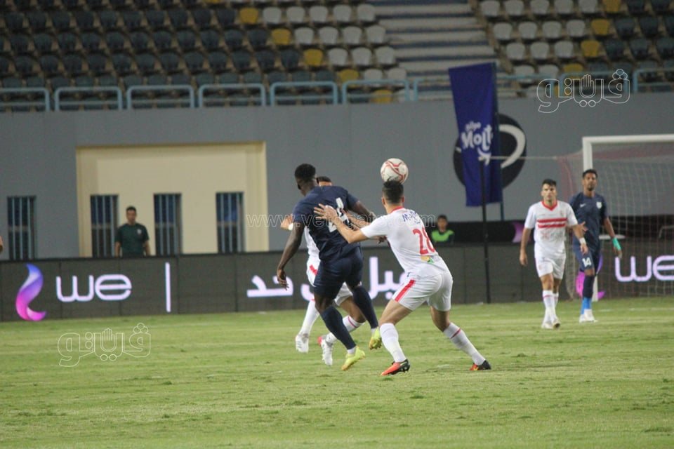وكاد النيجيري جون إيبوكا يباغت الزمالك بالهدف الأول فى الدقيقة 46 ولكن الكرة تعلو العارضة بقليل.
