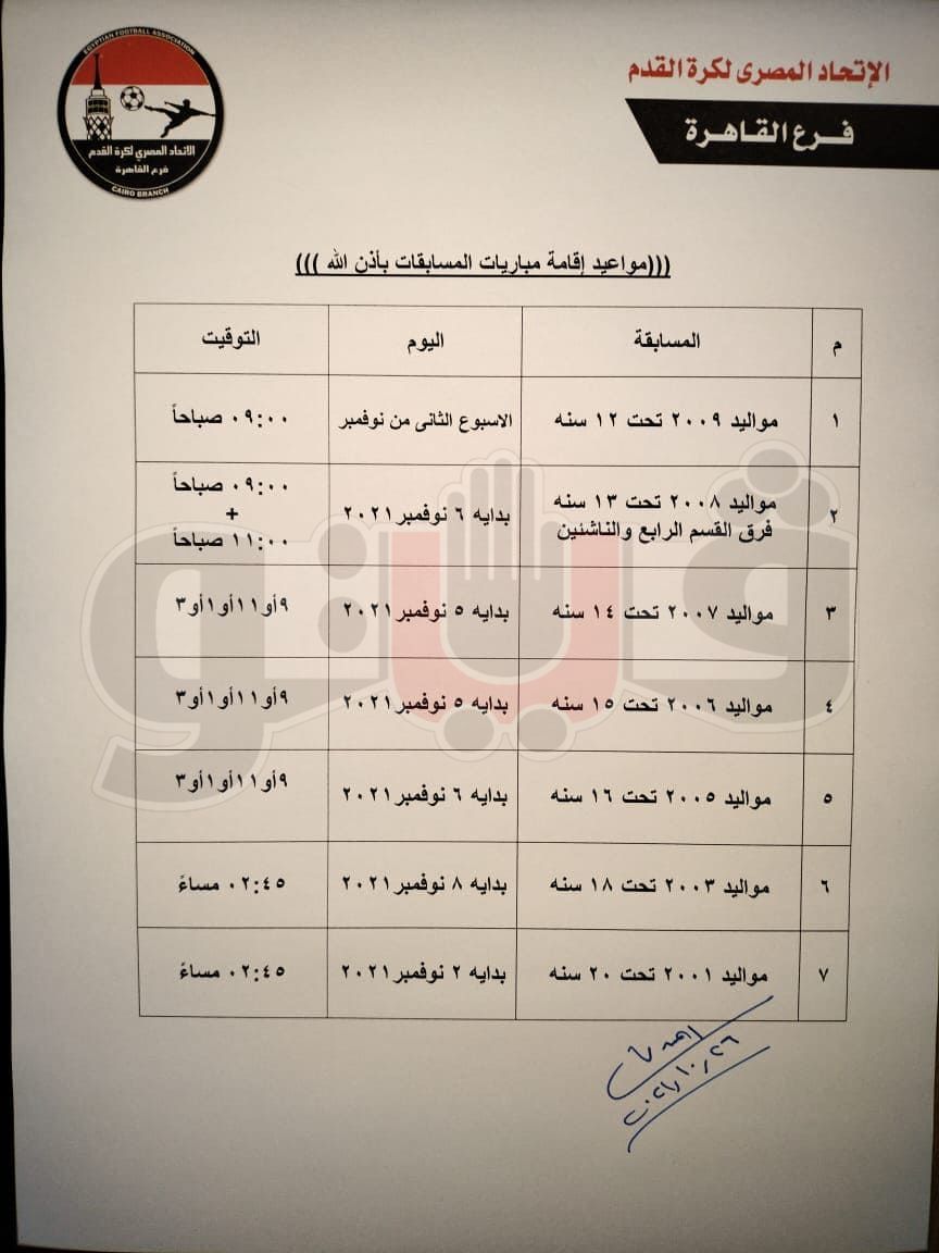 وجاءت مواعيد مسابقات الناشئين بمنطقة القاهرة كالتالي: