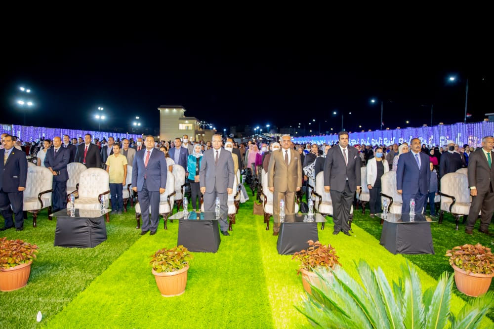 وبدأ الحفل بالسلام الجمهوري ثم فقرات غنائية بدأت بفريق كورال الأطفال التابع لوزارة الشباب والرياضة بقيادة الفنان غريب مندور، ثم عرض لفرقة سوهاج للفنون الشعبية التي أمتعت الجمهور بفنها الراقي وهي إحدى فرق الهيئة العامة لقصور الثقافة.