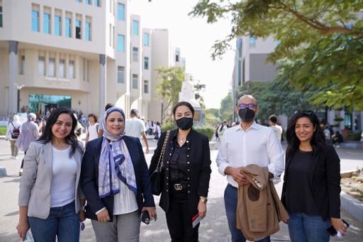وكان في استقبالها الدكتورة هدى أبو شادي نائب رئيس الجامعة للشؤون الأكاديمية والدكتور وائل توكل نائب رئيس الجامعة لشؤون الطلاب والدكتورة رانيه الجوهري عميد كلية الحاسبات وتكنولوجيا الذكاء الاصطناعي والدكتور أحمد طماره مساعد رئيس الجامعة للقطاع الصحي وندى لبيب مستشار رئيس مجلس الأمناء لشؤون المكتبات الجامعية في جولة داخل الجامعة للتعرف على إمكانات الجامعة وتضمنت الجولة زيارة المستشفى الجامعي وكان في استقبالها الدكتور محمد صفوت مدير المستشفى وتضمنت الزيارة المكتبة المركزية وأبدت إعجابها باهتمام الجامعة بالمساحات الخضراء والاهتمام بدعم الطلبة في مشاريعهم البحثية ووعدت بزيارات موسعة لمناقشة سُبل التعاون الممكنة.