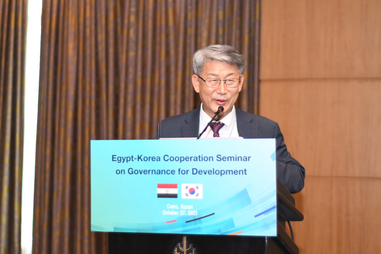 وأشار هونج جين ووك، سفير كوريا الجنوبية في كلمته إلى أن مصر تتغير بالفعل وأن كل أنظار العالم تنصب على هذا التغيير؛ وهو ما يدل على عزيمة الدولة المصرية لإحداث طفرة تنموية تهدف إلى تحسين معيشة المواطنين، وأشاد كذلك بمبادرة "حياة كريمة"، مضيفًا أنهم مستعدون لتقديم كل أوجه الدعم في هذه التجربة من أجل الدفع بالدولة المصرية في اتجاه التنمية الاقتصادية، وأوضح أن مصر من البلاد التي تأتي ضمن استراتيجية كوريا الجنوبية للتعاون الدولي لمدة 5 أعوام.